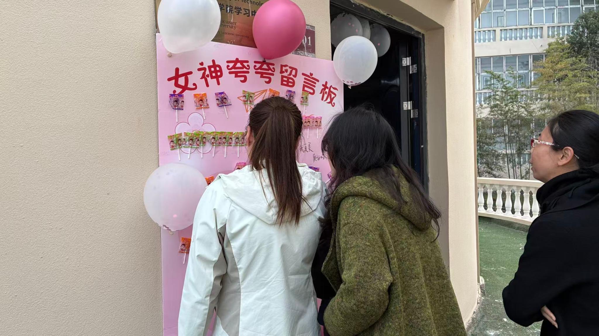 活动现场布置温馨雅致,精心打造的“女神夸夸墙”成为现场的亮眼打卡点。便签上写满美好祝福,下方悬挂着甜蜜的棒棒糖,女教师们入场后纷纷选取祝福便签,收获甜暖伴手礼;不少老师还现场书写便签,为同事送上专属暖心寄语,让温暖与美好在彼此间传递。