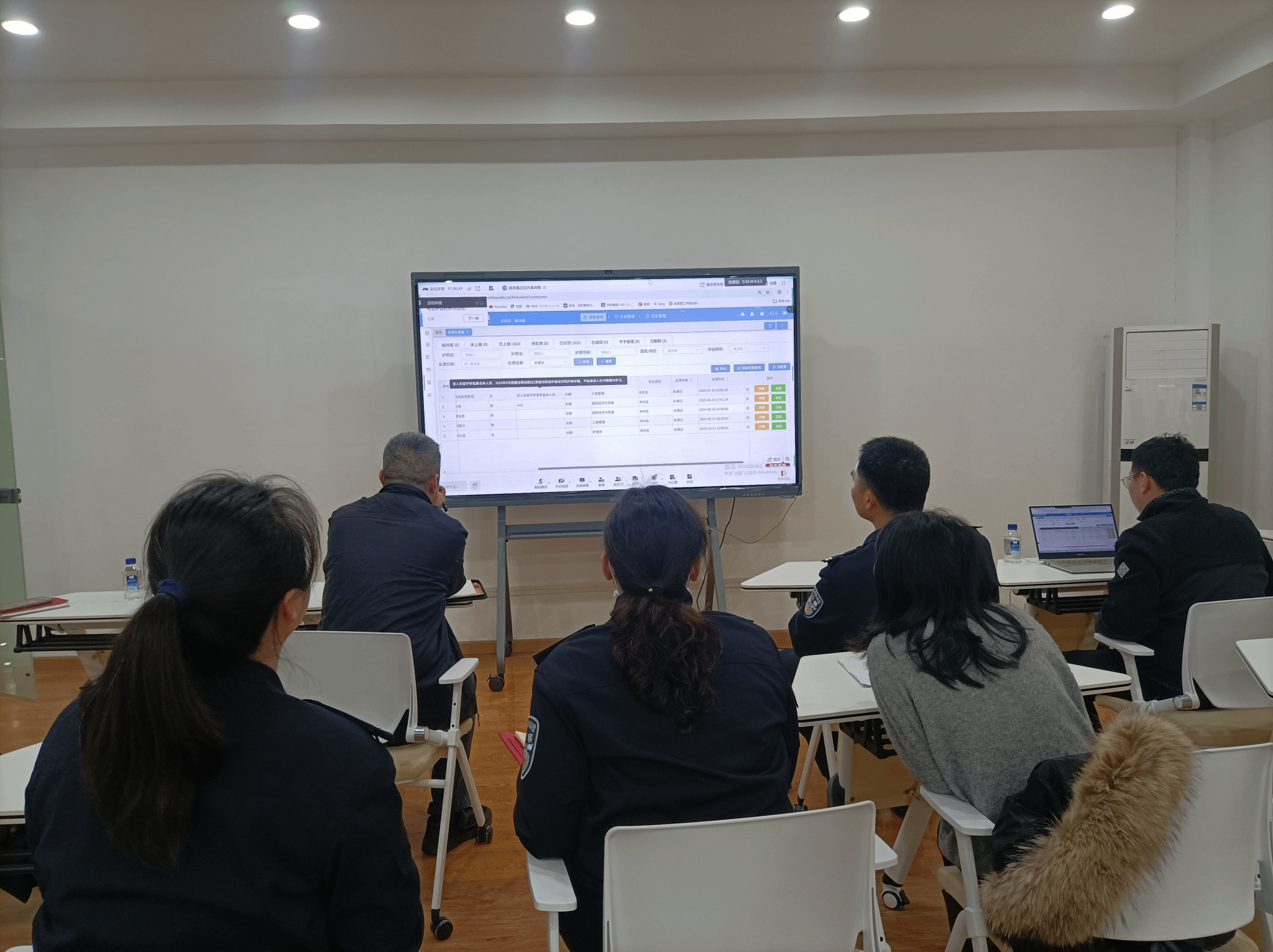 调研中,国际教育学院院长袁小花首先汇报了学校来华留学教育工作的整体情况,介绍了学校在国际学生招生、培养、日常管理及服务保障方面的经验做法,以及制度建设、管理规范化和信息化建设方面的成效。随后,曾小荣副局长重点了解了该校在全国来华留学管理信息系统的应用情况。国际教育学院教师颜泽晨围绕系统的实际使用进行了展示和讲解,包括招生审核、录取审批、在校管理等模块的具体操作流程,以及学校如何利用系统提升管理效率、保障学生服务质量。