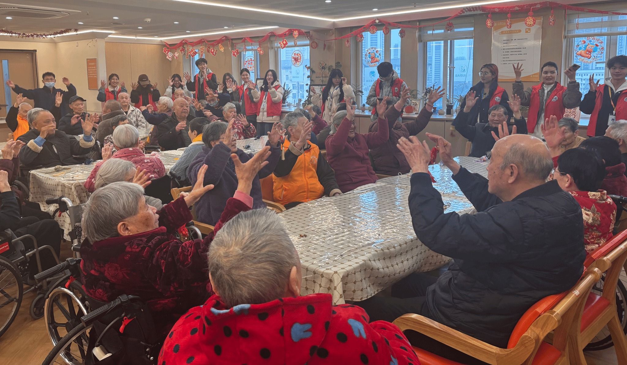 现场响起了《南泥湾》等经典老歌的旋律,老人们的眼神瞬间被点亮。随后,由志愿者带头领唱《我爱你中国》,熟悉的歌词和动人的旋律很快引发了全场的共鸣。老人们轻轻拍着手,跟着节拍轻声哼唱,有些老人甚至激动地站起来,与志愿者们一起高歌。活动最后,全体志愿者与老人们合影留念,用镜头定格下温馨而难忘的时刻。离开时,志愿者们自觉地拿起工具,将活动场地打扫得干干净净,以实际行动践行“服务社会、奉献爱心”的承诺。