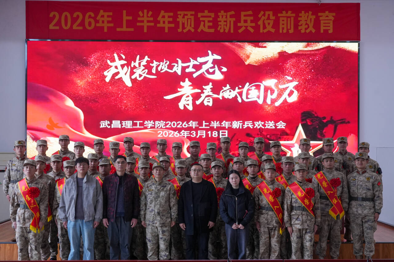 中南在线3月18日消息(通讯员 陈可欣 胡思雨 报道 邢鲍博 刘天乐 摄影)青春扬帆起,戎装护山河。3月18日上午,武昌理工学院2026年上半年新兵入伍欢送仪式在武汉市武昌区役前教育训练基地举行。武昌区人武部上校政委曹习亮、武昌理工学院学工处副处长温中华、学工处宿管科科长周云、学校素质导师代表王茜茜等出席仪式。武昌理工学院派出役前教育训练教官及全体入伍新兵参加了此次活动。欢送仪式由学校武装部老师张献主持。