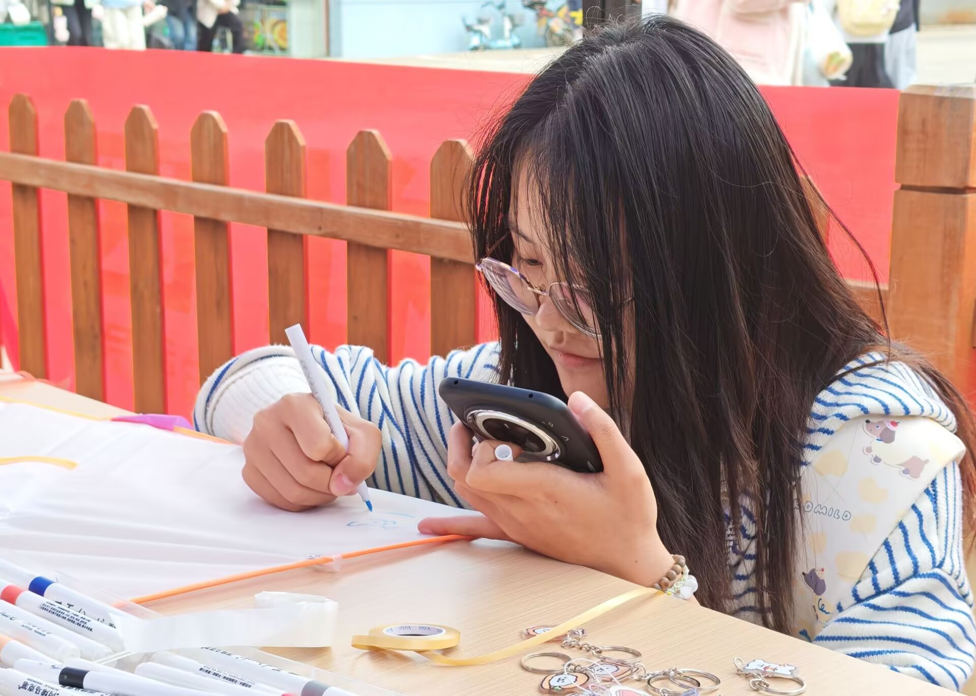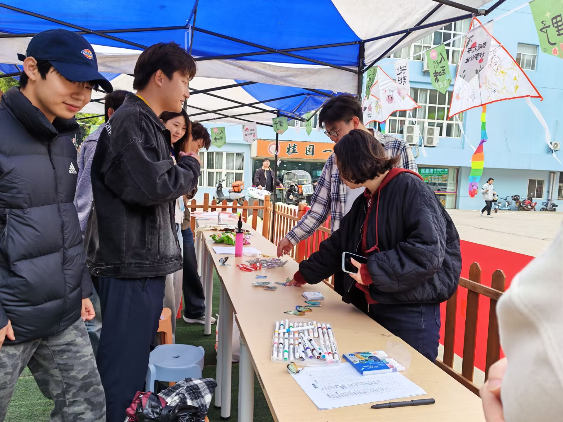纸鸢速绘区同样热闹非凡,同学们在领到工具后迅速投入创作,短时间内尽情挥洒创意。大家或勾勒春日盛景,或绘制红色元素,或书写青春理想,用五彩画笔赋予风筝独特的意义,一件件创意的风筝作品陈列在展示,引得过往同学纷纷驻足点赞,尽显学子的朝气与巧思。