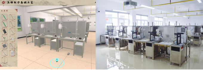 “理论+实践、虚拟+现实、数字+智能”的三维融合,是该课程最鲜明的特色。依托省级一流课程《玉石雕刻虚拟仿真实训教学平台》,该课程学生可进入高度逼真的虚拟雕刻环境,沉浸式感受玉石质地与雕刻过程,大幅增强了学习的直观性。工艺美术2102班的张俊同学分享道:“课程中学习浮雕、圆雕等各类雕刻技法时,每种技法都有其独特的要点与难点。老师现场示范的精细操作让我大开眼界,也让我深刻意识到掌握这些技法需要付出大量努力。”与此同时,课堂还引入人工智能建模与电脑雕刻技术,不仅提升了加工效率与作品精度,更为传统工艺注入了数字化新活力。