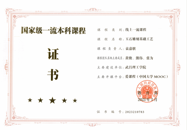 《玉石雕刻基础工艺》课程秉持“传统为根、创新为翼”的理念,将中华优秀玉石文化与现代数智技术深度融合。课程由中国工艺美术大师、中国玉雕大师袁嘉骐教授领衔教学,他从良渚文化玉琮的神秘图腾讲到明清宫廷玉雕的繁复工艺,从玉石物理特征解析到浮雕、圆雕等技法现场示范,始终坚持“因材施艺”原则,引导学生仔细观察玉料的裂痕、飘花等天然特征,独立完成个性化设计方案,让每件作品都独具匠心。