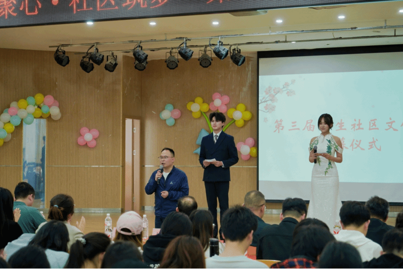 随后,学工处处长李金永上台致辞,并正式宣布第三届社区文化节开幕。他指出,社区文化节是学校丰富校园文化生活、凝聚师生力量、打造一站式育人阵地的重要平台,更是落实“以学生为中心”育人理念的生动实践。他希望全体师生以此次文化节为契机,积极参与、尽情展现,在文化活动中收获成长、凝聚共识,共同建设有温度、有内涵、有活力的梅南社区,让社区成为同学们成长成才的温馨家园。