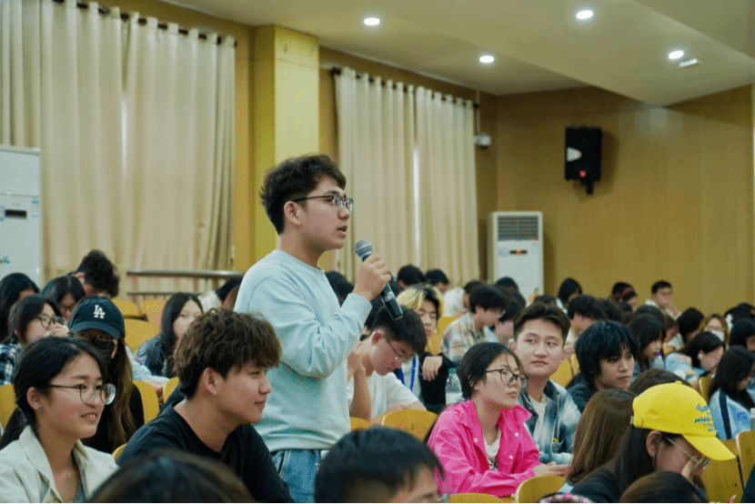 致辞结束后,剪彩仪式正式举行。各学院领导老师共同上台剪彩,金剪落下,彩带纷飞,标志着第三届社区文化节正式启航,现场掌声雷动,将开幕式氛围推向高潮。为进一步调动现场师生的参与热情,开幕式还设置了有奖问答互动环节。围绕校园文化、社区建设、校史校情等内容的趣味题目,吸引了同学们踊跃举手、积极抢答,现场欢声笑语不断,在轻松愉快的氛围中,进一步加深了大家对社区文化节的理解与认同。