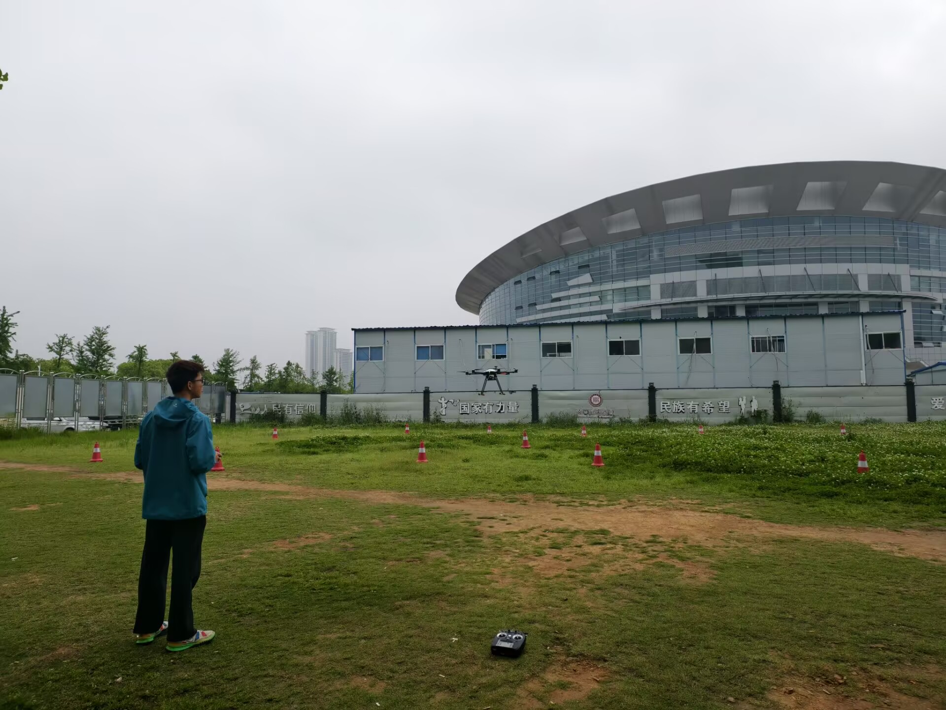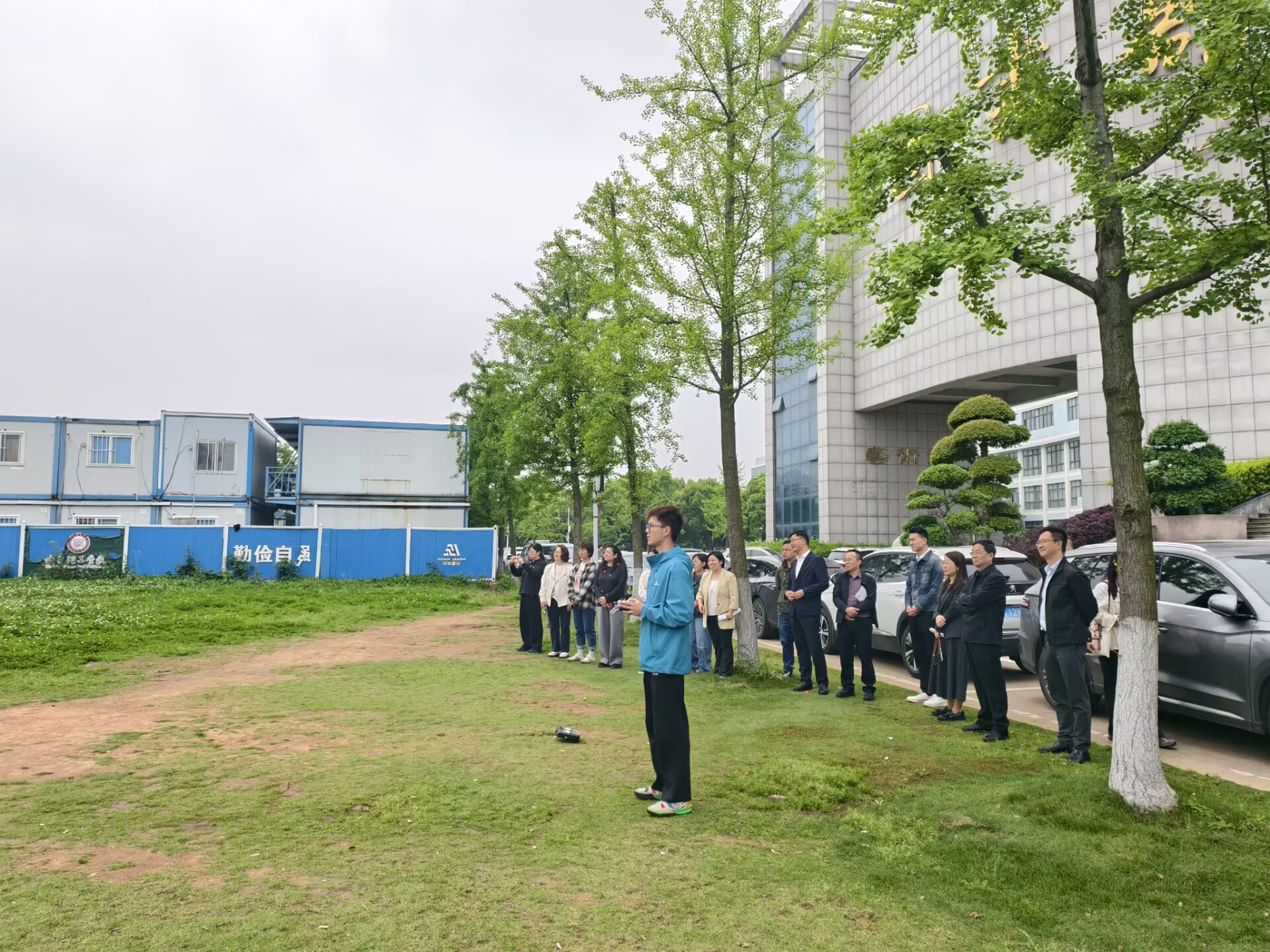活动最后,全体参会人员前往校图书馆门前的飞行训练场,观看专业飞手带来的无人机飞行实操演示。演示中,无人机依次展现平稳起降、精准悬停、灵活航线飞行以及任务载荷应用等核心技能,充分展示了现代无人机技术的先进性与广阔应用前景,也让即将参与培训的学员们充满期待。