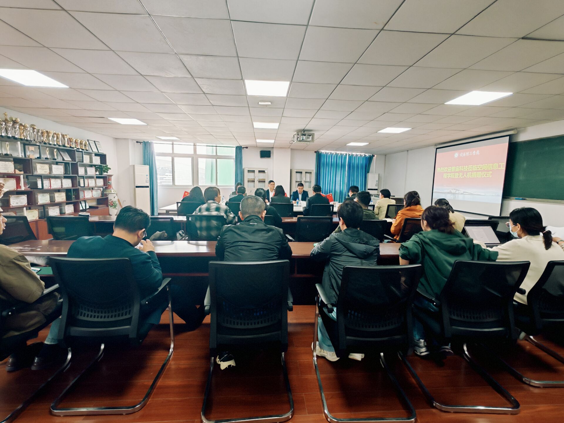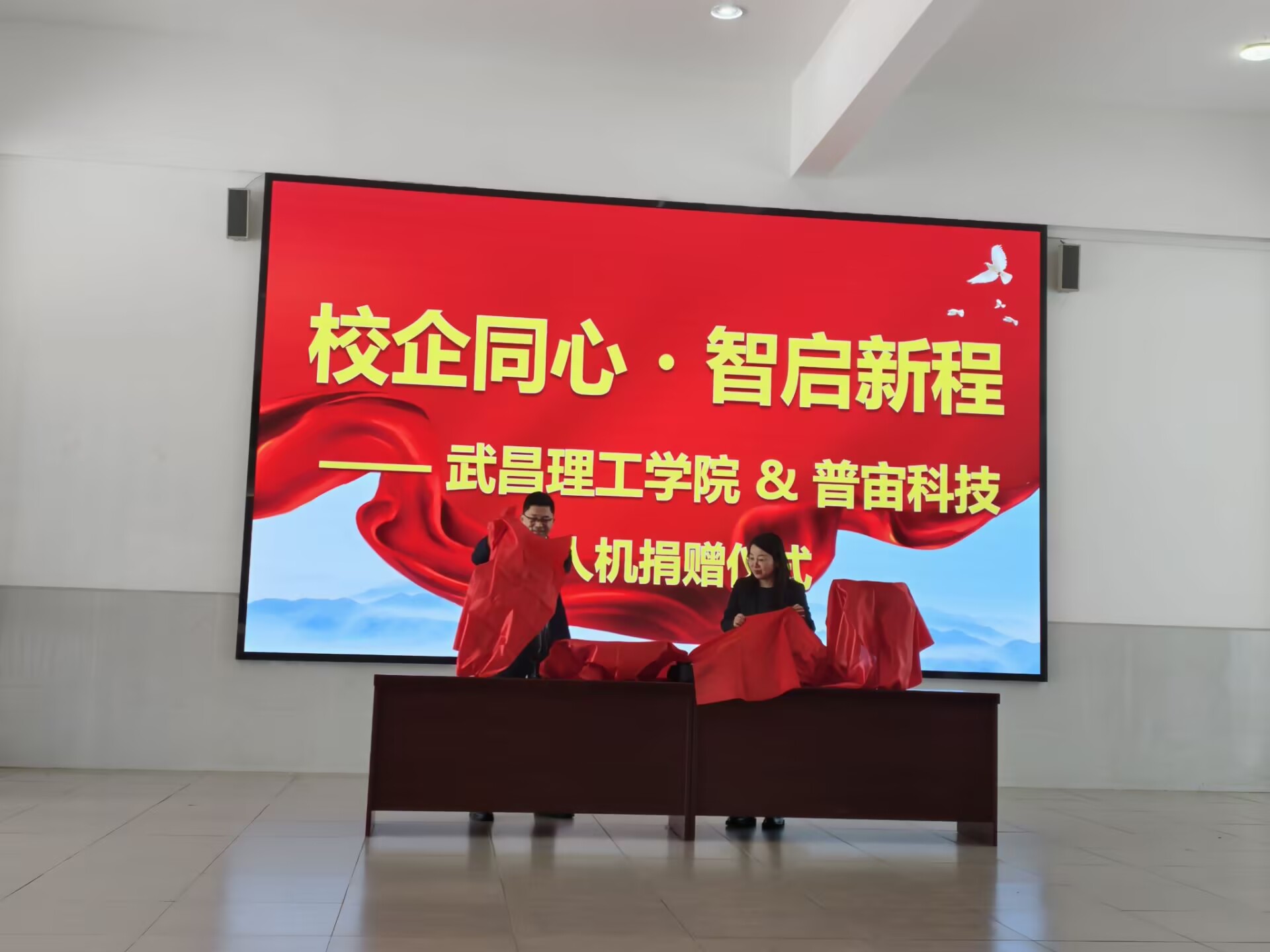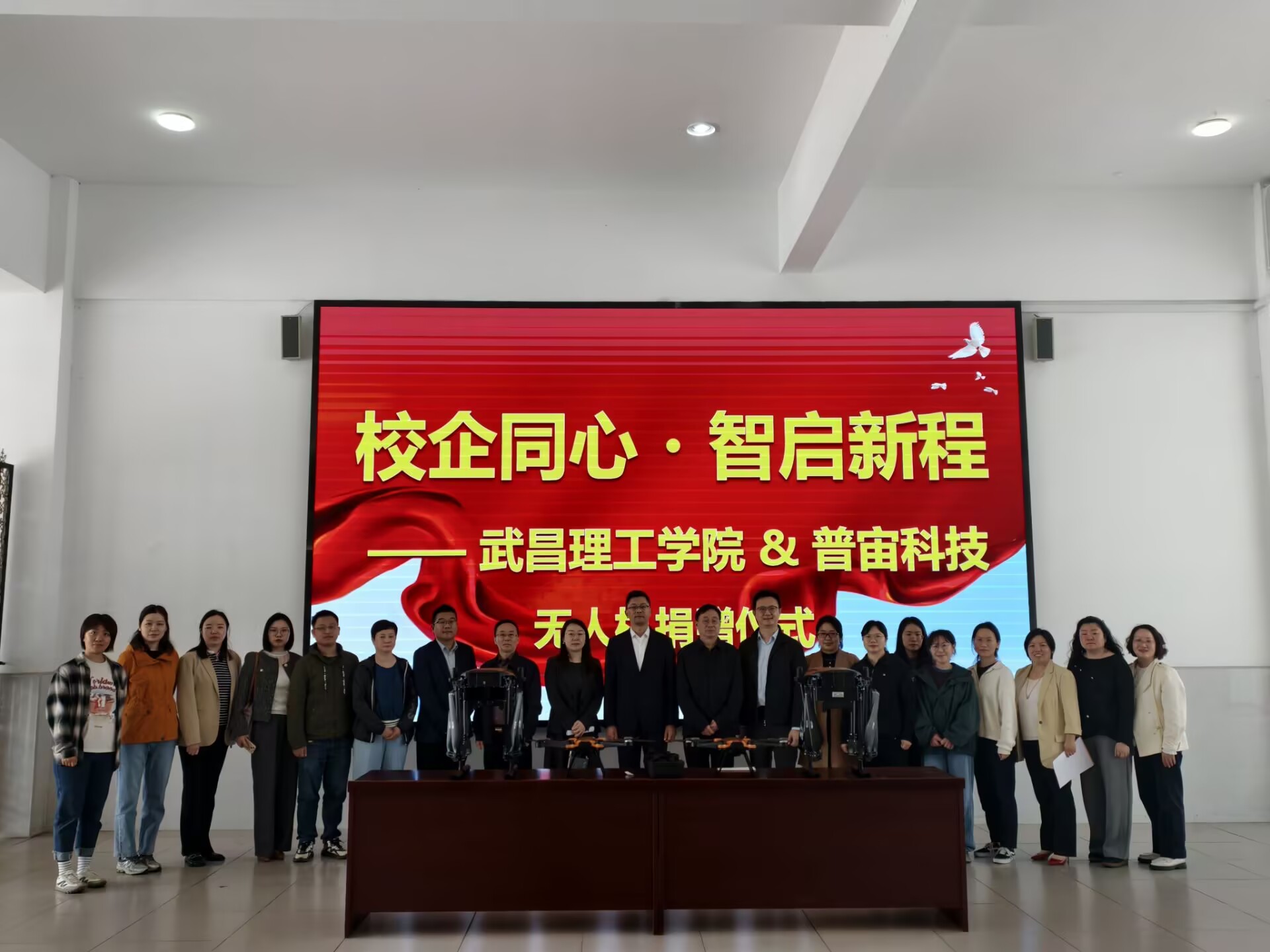 仪式于上午10时正式开始,由空间信息工程学院党总支书记王杰主持。武昌理工学院校长助理王锋、校长助理赵小睿、空间信息工程学院院长柳立生、空间信息工程学院教学副院长汤菲、产教融合办公室主任张可等领导,与普宙科技有限公司总经理陈虎、飞行学院院长刘楚、智慧文旅总监黄俭等企业高层共同出席,学院师生代表一同参与见证。