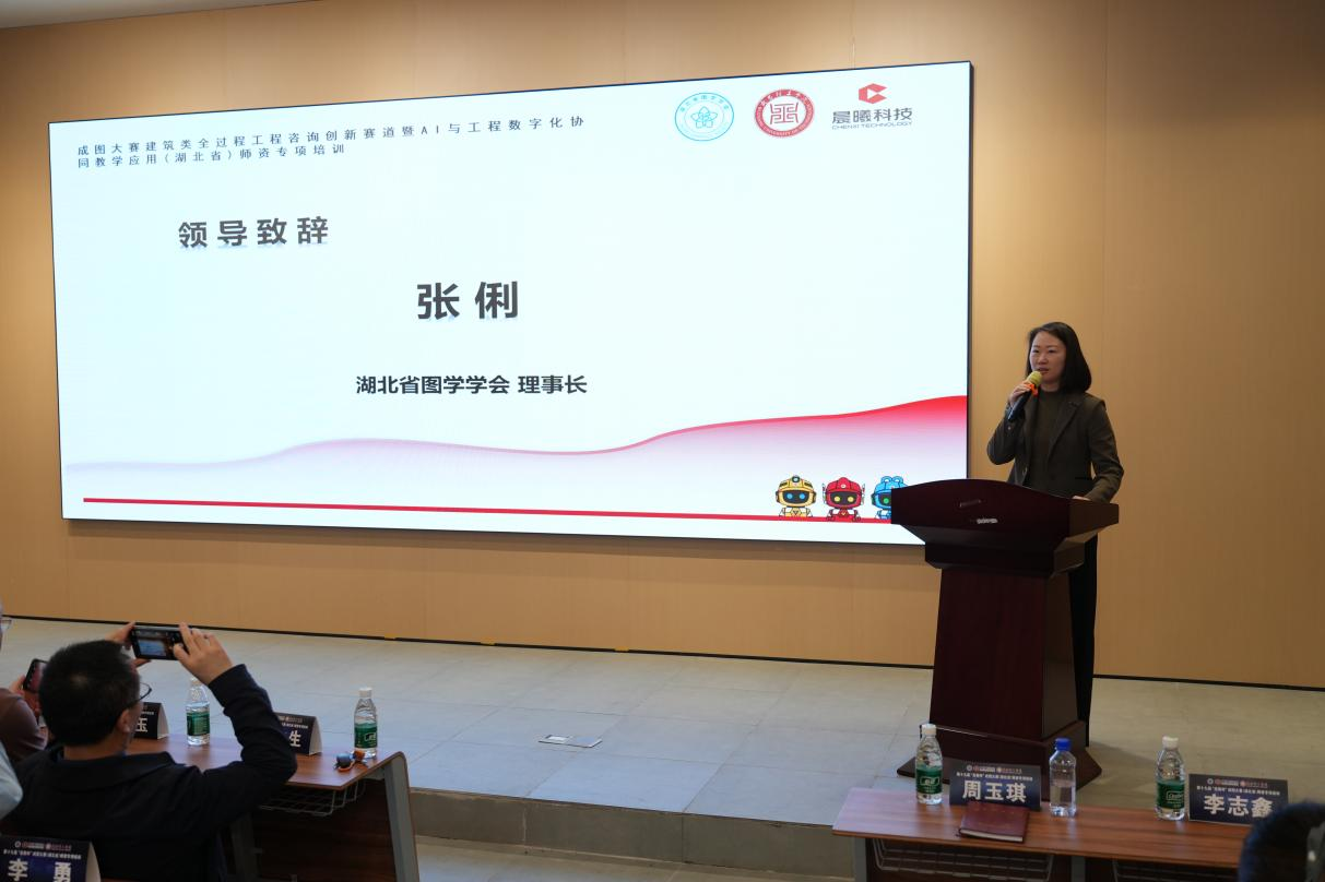张俐理事长在致辞中指出,“高教杯”成图大赛是国内图学领域极具影响力的高水平赛事,建筑类全过程工程咨询创新赛道紧扣行业发展前沿。希望各高校以本次培训为平台,精准把握竞赛要求,提升备赛实效,同时将数字化、智能化技术融入日常教学,以赛促教、以赛促学、以赛促建,推动湖北省工程类专业建设与人才培养工作再上新台阶。