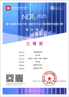《商品包装设计》课程是武昌理工学院视觉传达设计专业核心课程。结合学校地方性、应用型办学定位和视觉传达设计专业高素质应用型人才培养要求,通过本课程,使学生了解商品包装设计各流程相关知识。在实训指导教学中,利用优秀商品包装设计案例进行解析,归纳总结出商品包装的创意表现手法,利用综合包装设计项目的创作,锻炼学生解决商品系列包装复杂设计问题的能力。在课程特色与创新上:1.突出能力培养。紧跟商品包装设计前沿,密切关注市场需求和消费心理,培养学生的市场敏感度和创新能力,环境保护与可持续发展的绿色设计能力,多元文化和跨文化设计能力,技术应用和数字化设计能力,创意表达和沟通能力。2.产学研深度融合。深化产学研协同教学模式,将企业真实项目引入课程作业和实训,突出应用型人才培养,完成校企合作设计项目十多项。3.教学模式创新。实施“开发内化创新”教学模式,课中采用启发式、讨论式教学,课后采用团队学习模式,完成讨论和作业,课堂和课外学习时间比例达到了1:2.5。4.评价考核创新:建立科学的、多元化的线上、线下综合评价考核体系,运用信息化教学平台实现了对学生学习过程的多维度监督与管理,平时成绩有记录、可追溯、可评价、可检查。在学校领导、徐晓庚院长、熊伟副院长和教务处的工作人员的大力支持下,《商品包装设计》课程最终不负众望,实至名归获评省级一流课程。
