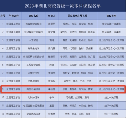 中南在线4月27日消息(特约通讯员 李桂林 报道)在湖北省教育厅发布的《省教育厅关于公布2023年度省级一流本科课程认定结果的通知》(鄂教高函〔2023〕19号)名单中,武昌理工学院艺术设计学院《商品包装设计》课程被认定为省级一流本科课程。