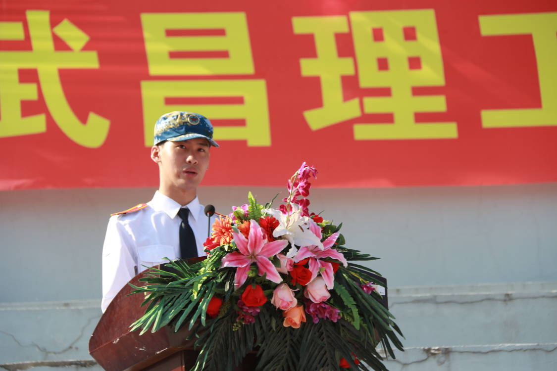 仪式第三项,由新生代表影视传媒学院播音2302班张致铭同学动员发言,他表示:“作为即将参与军训的大一新生,我们应该对这次军训怀有敬意,青年人有担当新时代的责任与使命,中国的未来属于青年,中华民族的未来属于青年,因此青年人要为国家贡献自己的力量。在大学生涯这个重要时刻汲取营养奋发向上,服从安排,遵守规定。以军人的身份严格要求自己,军训并不仅仅是对身体的考验,更是对意志的磨练。通过这次军训的实际训练,培养大学生面对困难克服困难,养成应该具备的坚韧不拔的意志品质,增强体质的同时促进精神品格的形成与发展,从而进一步的提升个人素养,践行武昌理工学院校训‘追求卓越,走向成功’。”