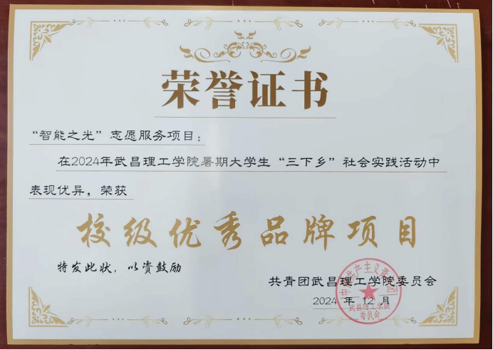 在日常工作外,彭子豪积极参与暑期社会实践活动,作为“智能之光”慧梦未来志愿服务队材料组的一员,参与支教前期立项的材料编写,制作“七彩假期”志愿服务队申报表以及各种调研报告等,开展奇妙的空气动力学-飞行的秘密、舌尖上的红安等特色课程,为孩子们普及知识。此外,他们走进居民家中慰问一位拥有50年党龄的奶奶,感受先辈在艰苦岁月中无私奉献的精神,在志愿活动中成长,荣获2024年武昌理工学院暑期大学生“三下乡”社会实践活动“校级优秀品牌项目”。