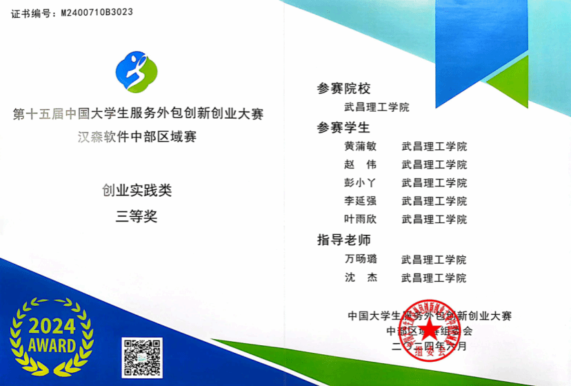 黄蒲敏,女,中共党员,武昌理工学院健康与护理学院康复治疗学2201班学生,曾任校青年创新创业发展中心执行主席,创客俱乐部会长,武汉市冯翼惟象科技有限公司法人,武汉市江夏区高校创业社团联盟常务理事。在校期间获奖达50余项,其中国家级奖项13项、省级奖项11项、校级奖项24项等,还获得了大创立项国家级2项,省级2项。现获得武昌理工学院2024-2025年度“创业之星”“院级优秀学生”荣誉称号和“元璋创新奖学金”。