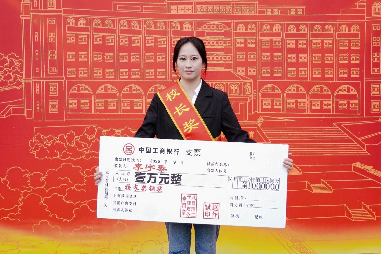 李宇泰,女,中共党员,武昌理工学院商学院工商管理(精英班)2101班学生,曾任商学院学生第二党支部宣传委员兼秘书长,现已成功考取世界一流学府墨尔本大学的研究生。作为2025届毕业生,她以出色的学业成绩、扎实的实践能力和全面的组织管理能力,荣获武昌理工学院“校长奖”荣誉奖项。这一荣誉是对她四年勤学笃行、全面发展的充分肯定,也是新时代大学生榜样力量的生动体现。