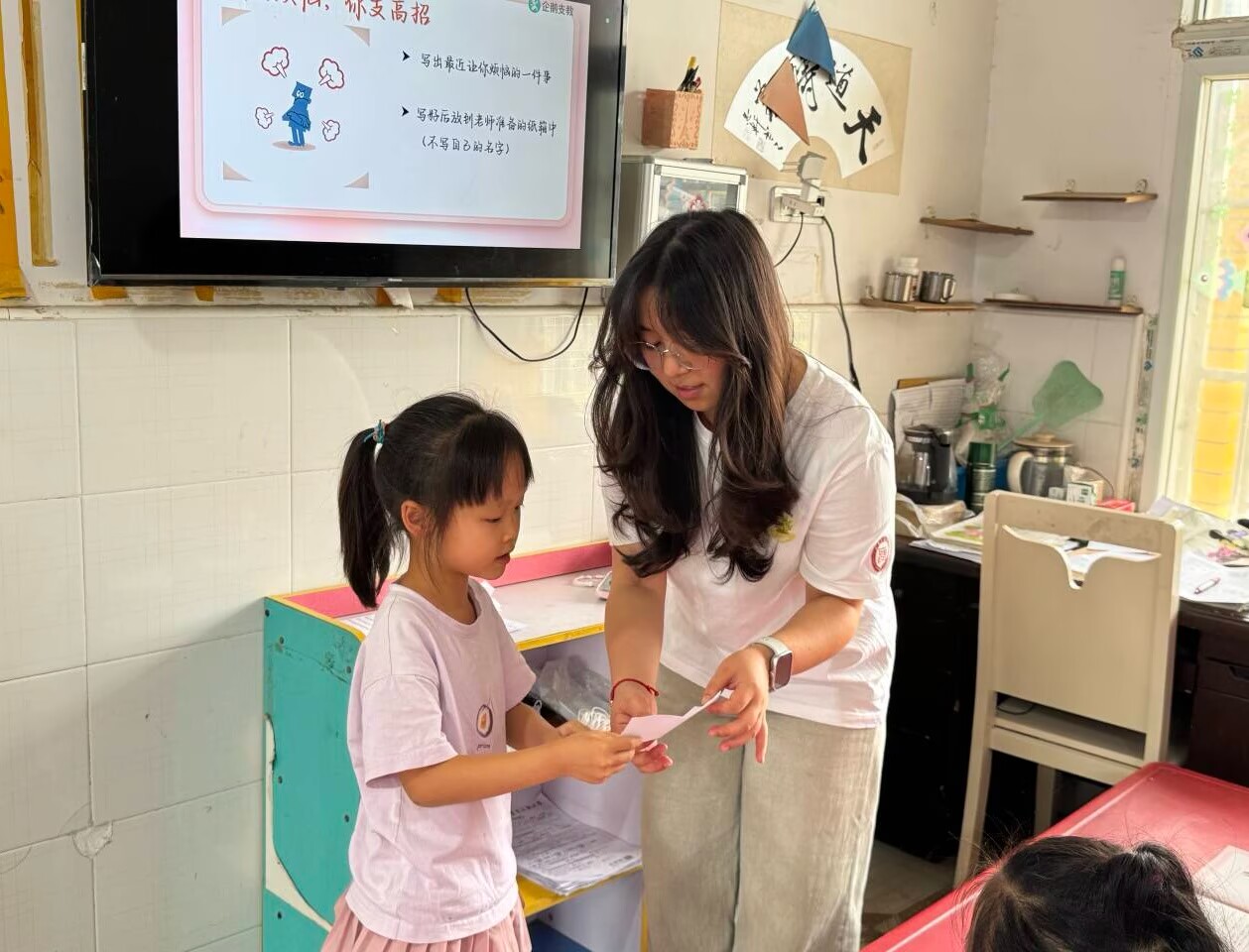 邓静娴还积极投身社会实践与志愿服务活动,用实际行动践行共青团员的责任与担当,她的志愿服务时长高达409小时。2025年暑假,她主动报名“七彩假期,关爱行动”支教活动,深入基层为孩子们带去知识与温暖,用爱心点亮了孩子们的假期生活。这些志愿服务经历不仅让她收获了成长,更让她深刻体会到“奉献、友爱、互助、进步”的志愿精神,也让她更加坚定了用专业能力服务社会的信念。