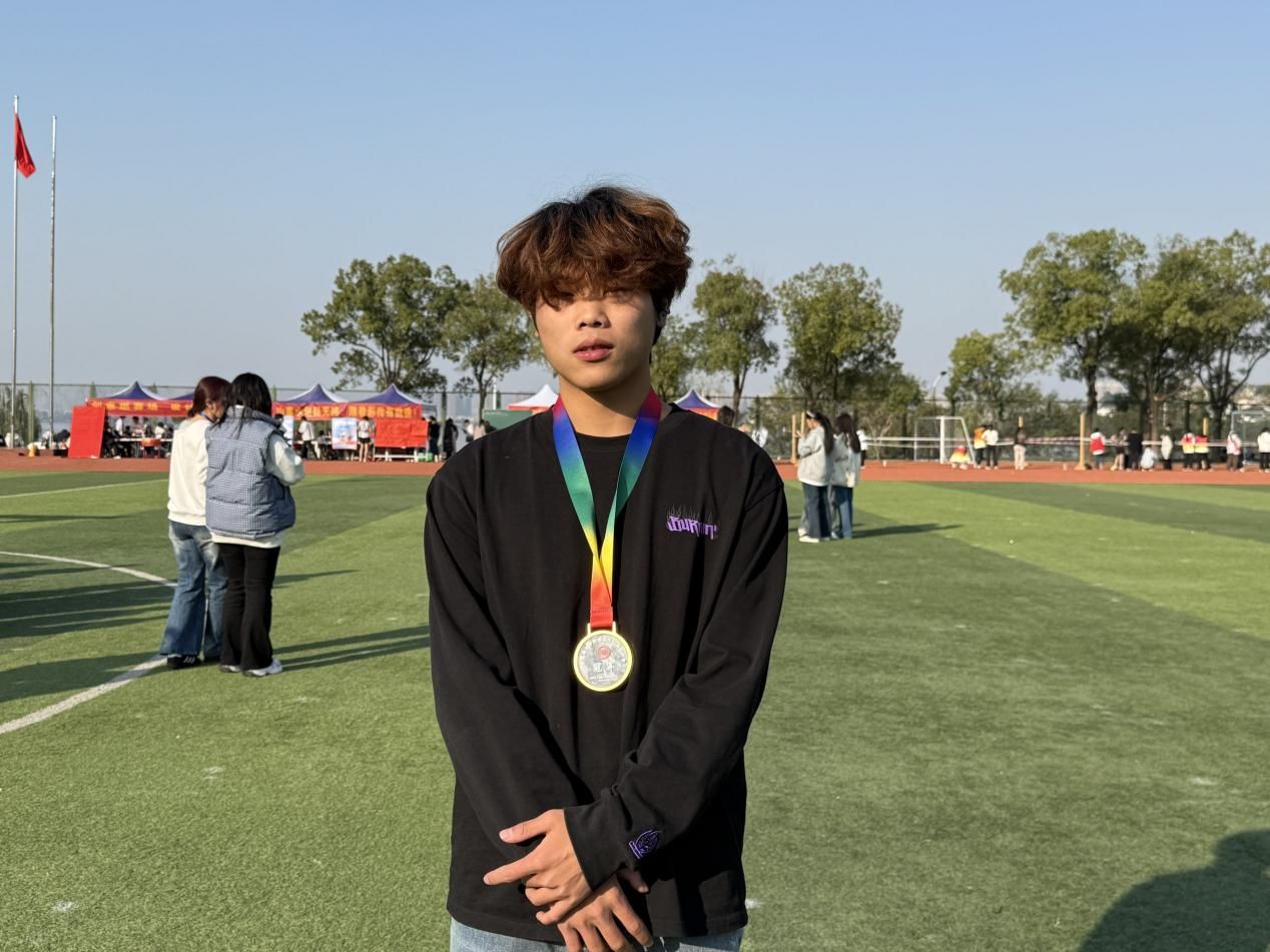 “少年自有凌云志,不负韶华逐梦行。”刘宏涛与田径的结缘,始于对速度的热爱与执着。为了突破自我,他日复一日重复着起跑、加速、冲刺的动作,在肌肉酸痛与极限挑战中不断打磨技术细节。凭借这份不懈坚持,他在2024年一举创下校100米纪录,获得10.84秒的好成绩,成为校园里公认的“飞人”。更在同年各类赛事中展现统治力,将100米、200米及混合4×100米接力三项冠军收入囊中,成为赛场上最耀眼的存在。