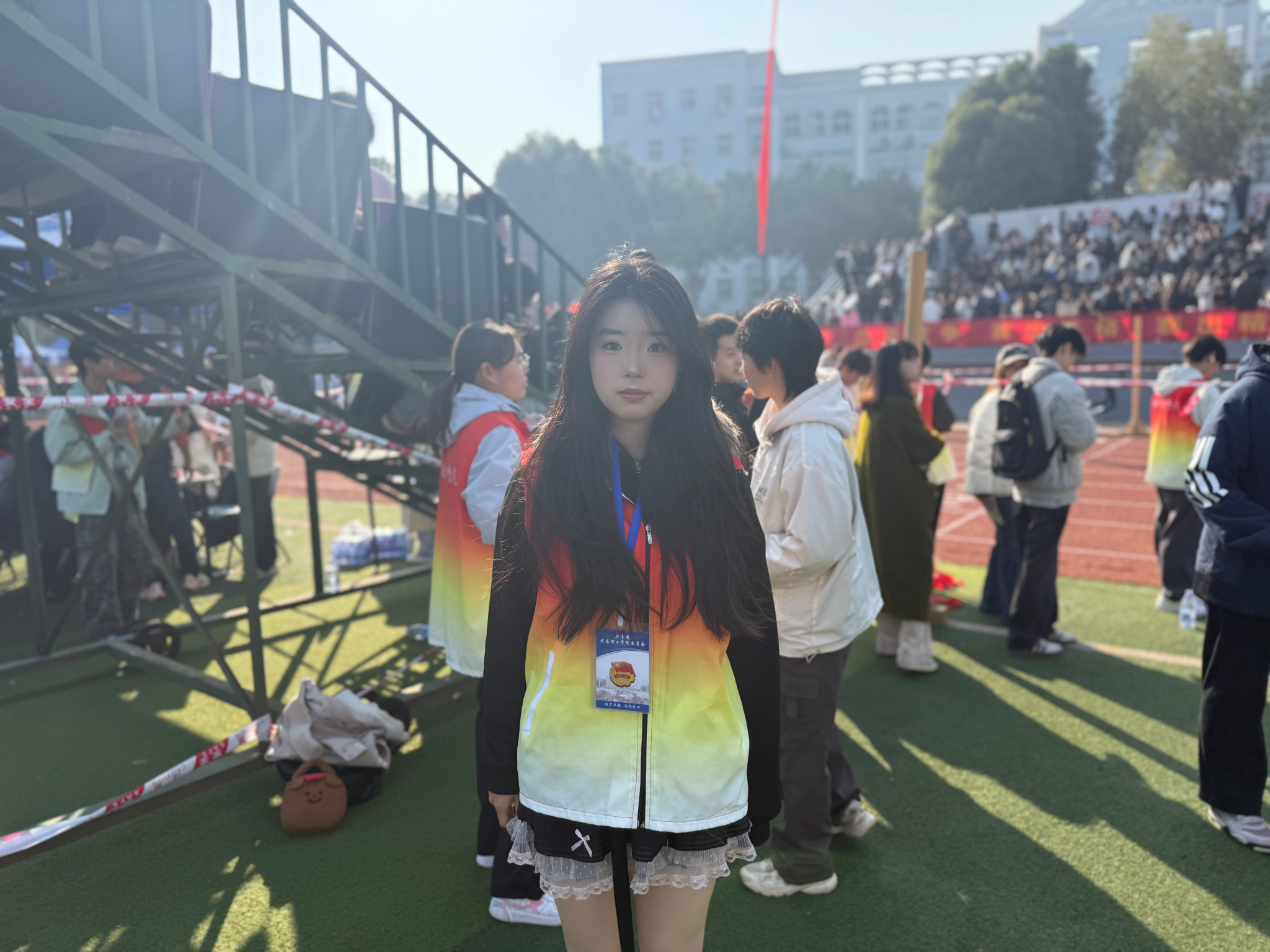 邓子涵,女,武昌理工学院文法学院法学2503班学生。现任学风与发展自治委员会干事,在本次第二十一届运动会担任计时裁判员。
