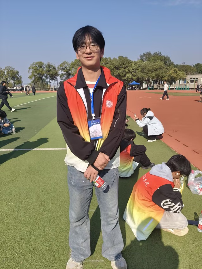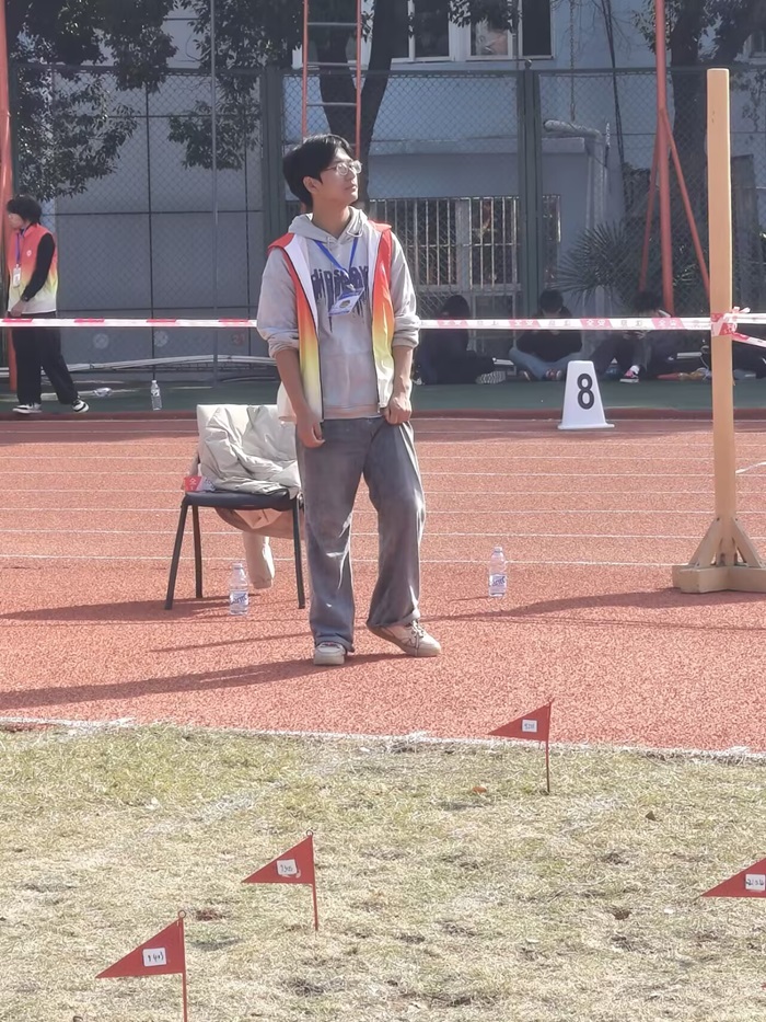 在运动会准备阶段,吴千才便展现出了极强的执行力与责任心。他主动钻研赛场秩序维护的相关规则,梳理出观众引导、区域管控等多个重点工作环节,结合自身参与抽烟巡查、卫生打扫等志愿活动的经验,提前预判比赛现场可能出现的秩序问题,并制定应对方案。利用课余时间,他积极参与裁判员专项培训,与同伴反复模拟“观众越界”“赛事咨询”等场景,打磨沟通话术与引导流程,确保每一项工作都落实到位、不留漏洞。