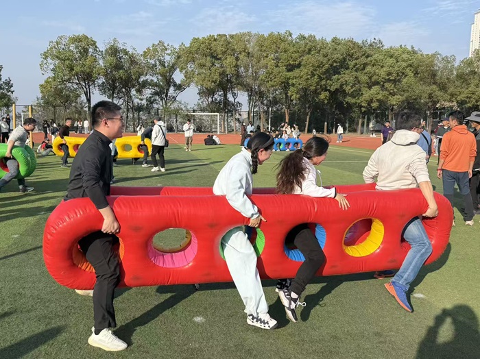 “同舟共济”项目极度考验团队成员的默契与协同。王子琛老师作为队伍的核心成员,他在赛前就积极参与战术讨论,提出多项建设性意见。比赛开始后,他时刻关注全队状态,用清晰洪亮的口令统一队员步伐,及时提醒队员调整节奏。当有队员出现配合失误时,他第一时间给予鼓励,帮助团队迅速重拾信心。在他的有效协调下,全队始终保持良好的整体性和协调性。