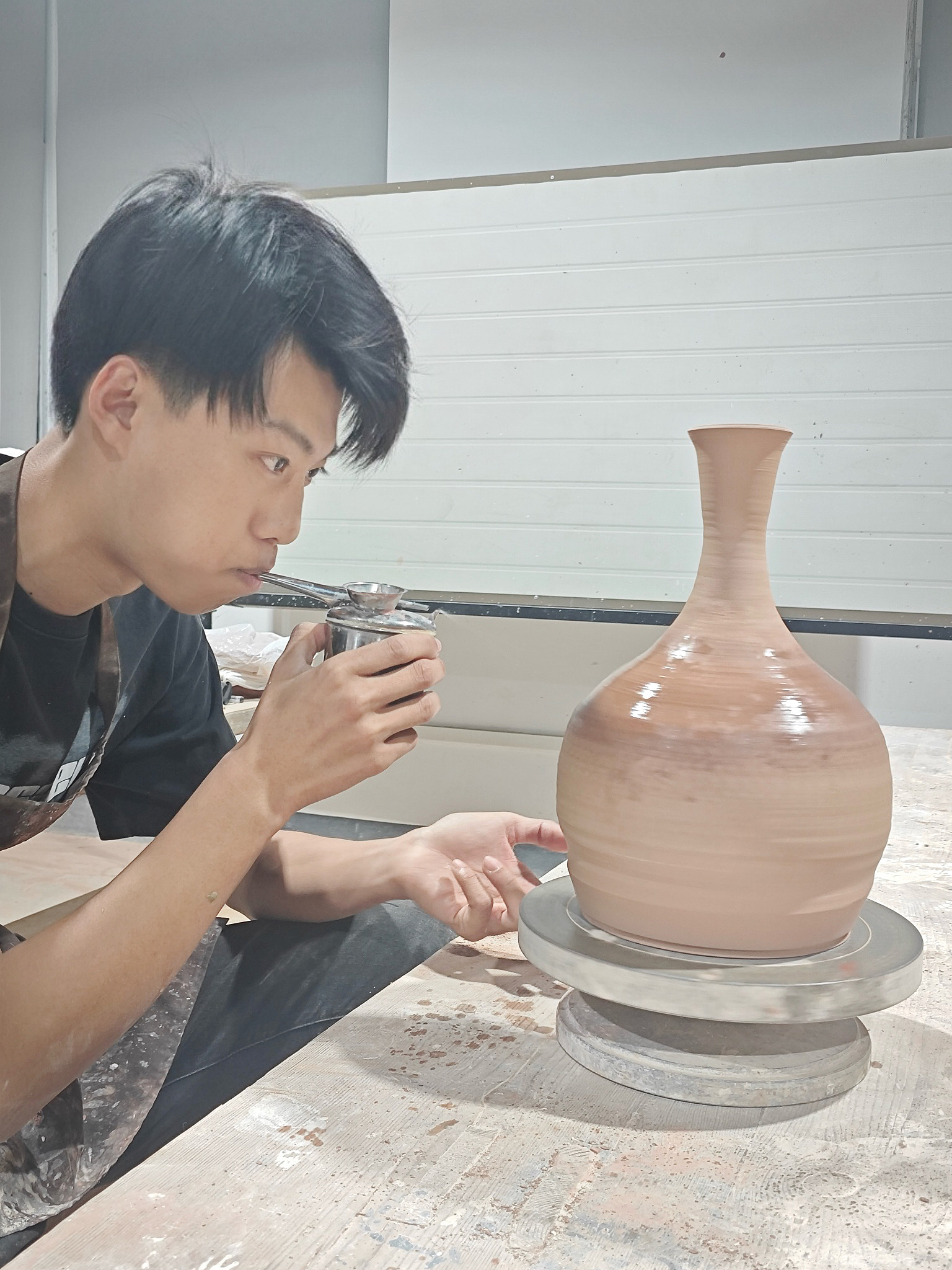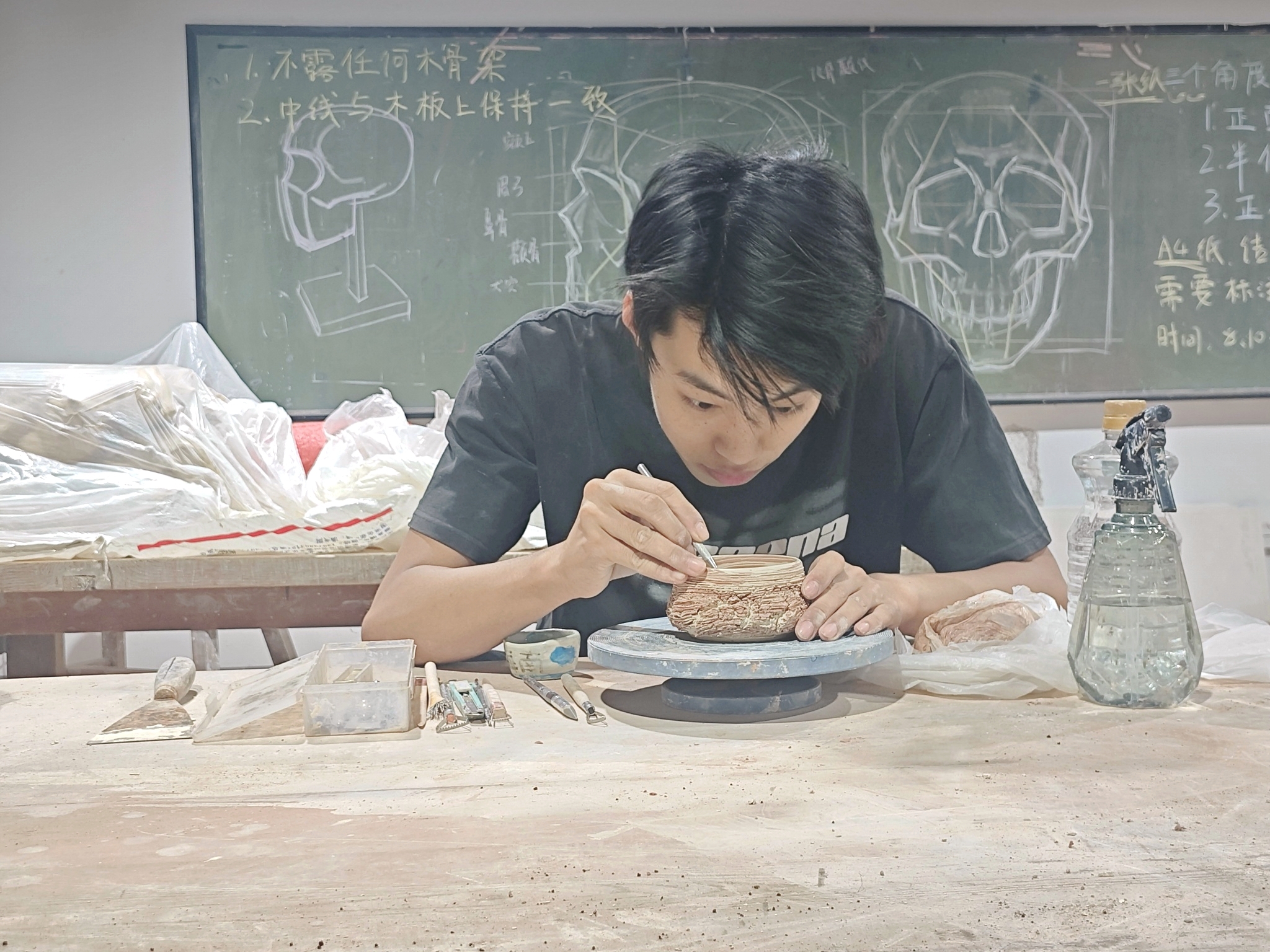 “兴趣是最好的老师,热爱是前行的底气。”谈及专业学习,李梦航始终秉持这份信念。数媒专业工艺美术方向的学习内容,与他的兴趣高度契合,也让他迸发了不竭的学习动力。课堂上,他专注汲取专业知识,积极与老师探讨创作难题。课后,他将大部分课余时间投入创作,周末扎根工美大楼打磨作品,从陶艺雕塑到综合材料创作,每一件作品都凝聚着他的专注与思考。这份深耕不辍的坚持,让他不仅成为班级公认的“学习标兵”,更凭借扎实的创作功底与鲜明的作品风格,成功加入省青年美术家协会,用专业实力诠释了“热爱可抵岁月漫长”。