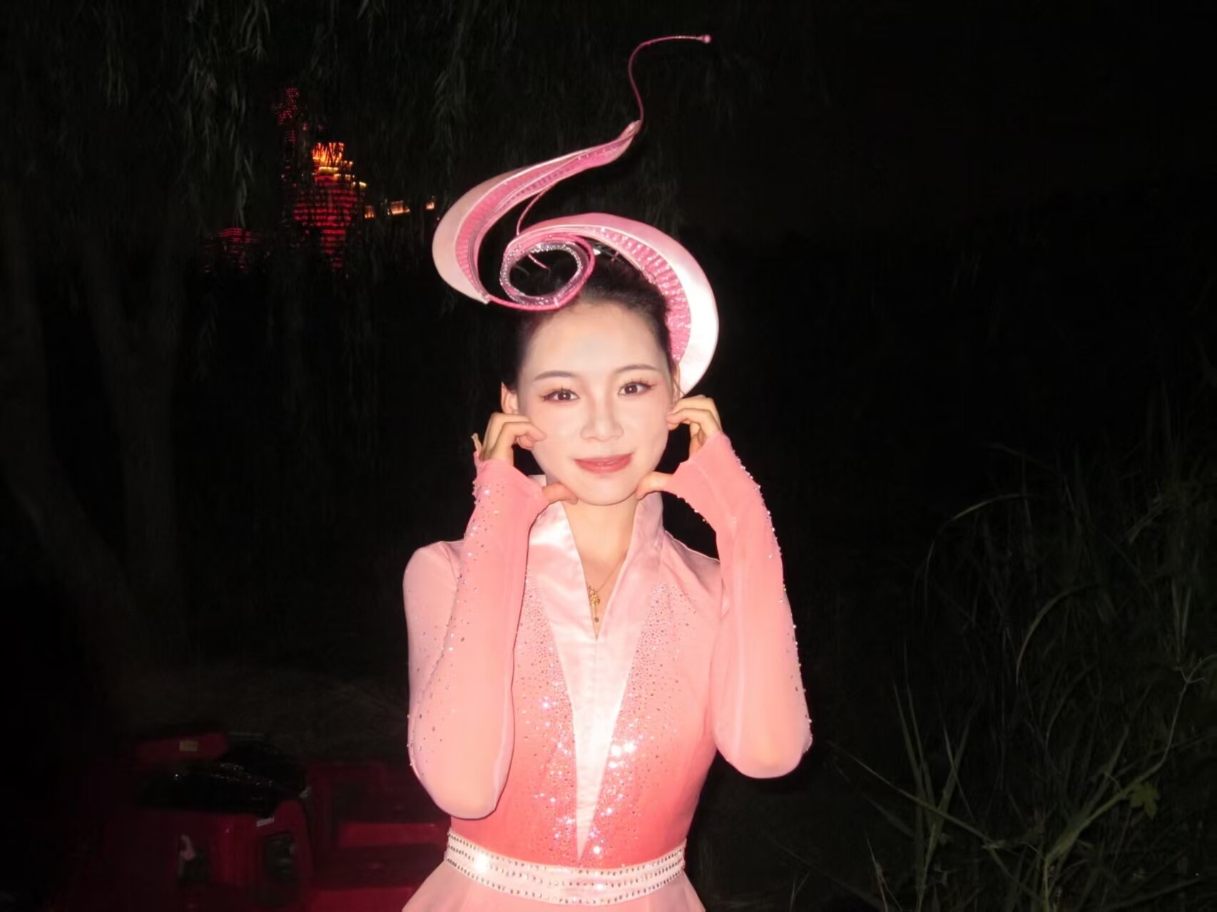 2024年参演长江文化艺术节《美丽中国》时,她挤掉所有课余时间投入集中排练,硬是靠着高强度的训练跟上节奏,圆满完成演出;2025年央视蛇年春晚武汉分会场《星汉耀江城》演出筹备时,江边的寒风裹着桥洞的粉尘,她穿着单薄的绸缎服饰一站就是很久。过敏叠加劳累让她一度晕厥,被送进医院吸了两小时氧,可刚缓过来,她第一念头就是“不能耽误演出”,立刻赶回片场继续排练。同年8月排演《壮丽航程》,室外高温灼人,临时搭建的棚子挡不住热浪,她连续一周早出晚归,三餐就靠路边简餐垫肚子,累了就找个角落歇一会儿,却从没缺过一次排练。