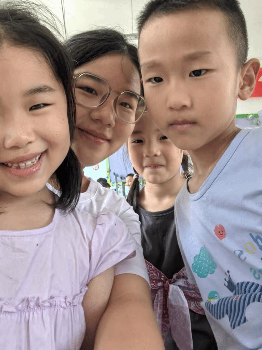 这份心愿在大二暑假终于圆满。踏上支教路的柯韵萌,很快和队员们打成一片,更成了孩子们眼中温柔又有趣的“小柯老师”。孩子们追着她问城里的故事,围着她学画画、练朗诵的模样,被队员们一次次定格在镜头里;当地村民送来的一碗碗热粥、一句句朴实的叮嘱,也让同行的伙伴们感慨:“韵萌总能快速和大家亲近起来,有她在,志愿活动里满是温暖。”