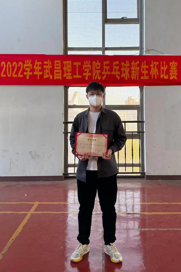 比赛中,黄博仲两脚开立与肩同宽,两膝微屈,上体略前倾、收腹,持拍手臂自然弯屈,两眼注视来球。似要和对手大战三百回合。小小的乒乓球在球台上来回穿梭,直拍、横拍、扣球、旋转球、弧线球等都得到了一一体现,赛场里拼搏氛围浓郁,叫好声此起彼伏,引得一旁观看比赛的观众们跃跃欲试。历经近几个小时激战,最终,黄博仲在此次比赛中获得第一名的好成绩。赛后,记者采访到黄博仲,他幽默地表示:“我作为一个专升本新生,和刚入大学的新生一起参加比赛,感觉有点胜之不武,但作为乒乓球爱好者,我无愧于我对乒乓球的热爱!”