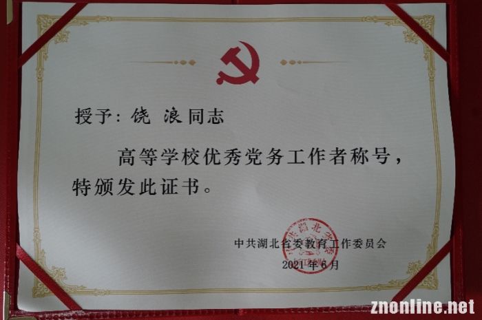 中南在线8月13日讯 在中国共产党成立100周年之际,省委教育工委决定对党内一批优秀个人和先进组织予以表彰。武昌理工学院人工智能学院党总支书记饶浪同志荣获“优秀党务工作者”称号,成为全省100名高等学校优秀党务工作者中的一员。
