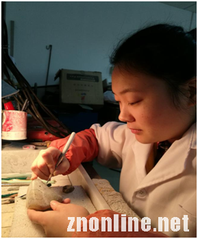 每当拿到一块玉石原石,廖青像是如获至宝般兴奋,她像对待小婴儿一样,用双手紧紧将玉石捧在手中细心呵护。每次开始创作时,她先会静静地去观察玉石本身的结构,然后再放任思绪去“天马行空”进行构思,进行选题与图案设计,待其确定最佳方案,玉石图案的每个细微边角都进入脑海时,方才开始着手选择用哪把刀,如何下刀,力度如何……对于自己的玉雕作品廖青是极其细致严谨的,她不希望因为自己的一丝毫纰漏而浪费了玉石原料。她雕刻出来的很多作品越来越精细巧妙,这不仅给她带来了创造上的成就感,也让她越发地喜欢上了玉雕这个专业。