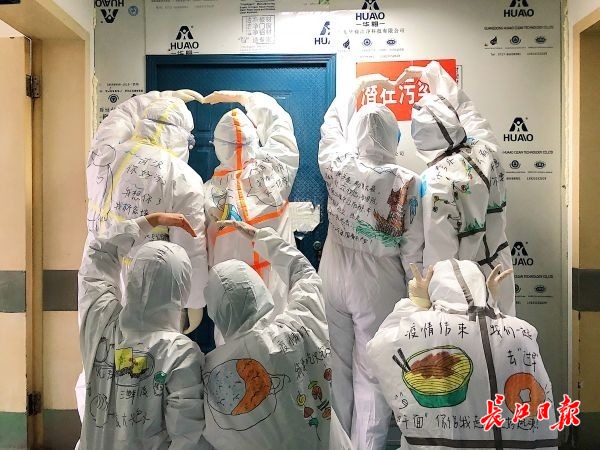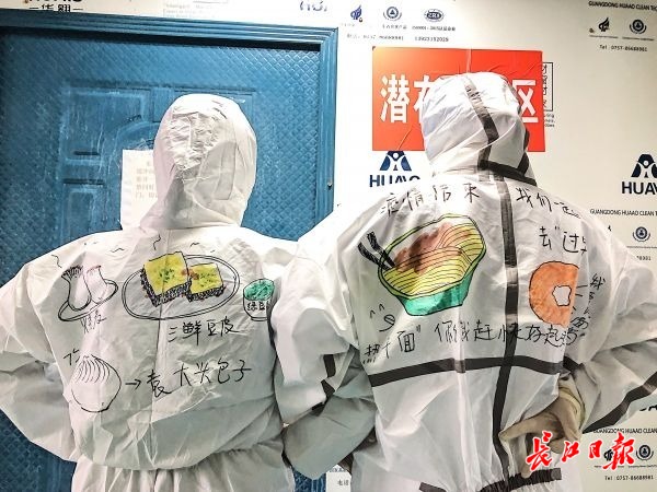 文章中,“最美护士团”“最强医生团”“最美护士的天使印记”,一张张照片传递出满满的正能量。她绘制的7件“定制版”防护服也令人同事们惊喜不已——热干面、面窝、三鲜豆皮、黄鹤楼、樱花纷纷亮相,惟妙惟肖。