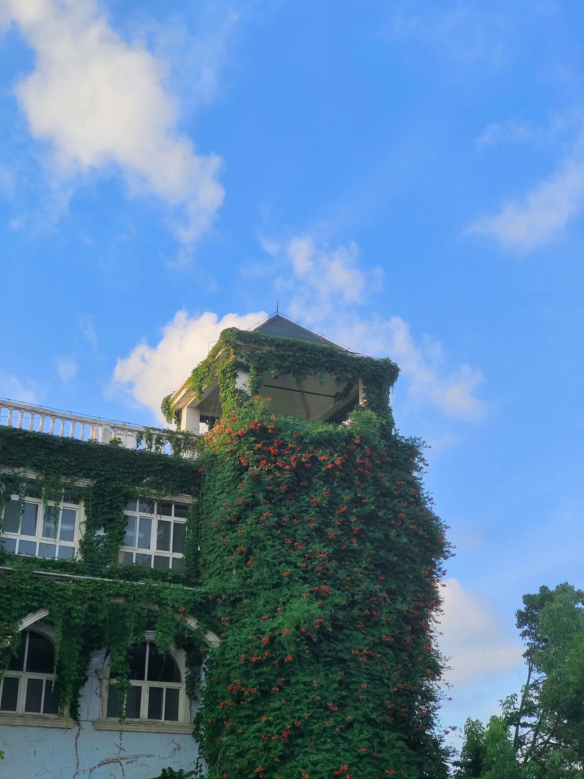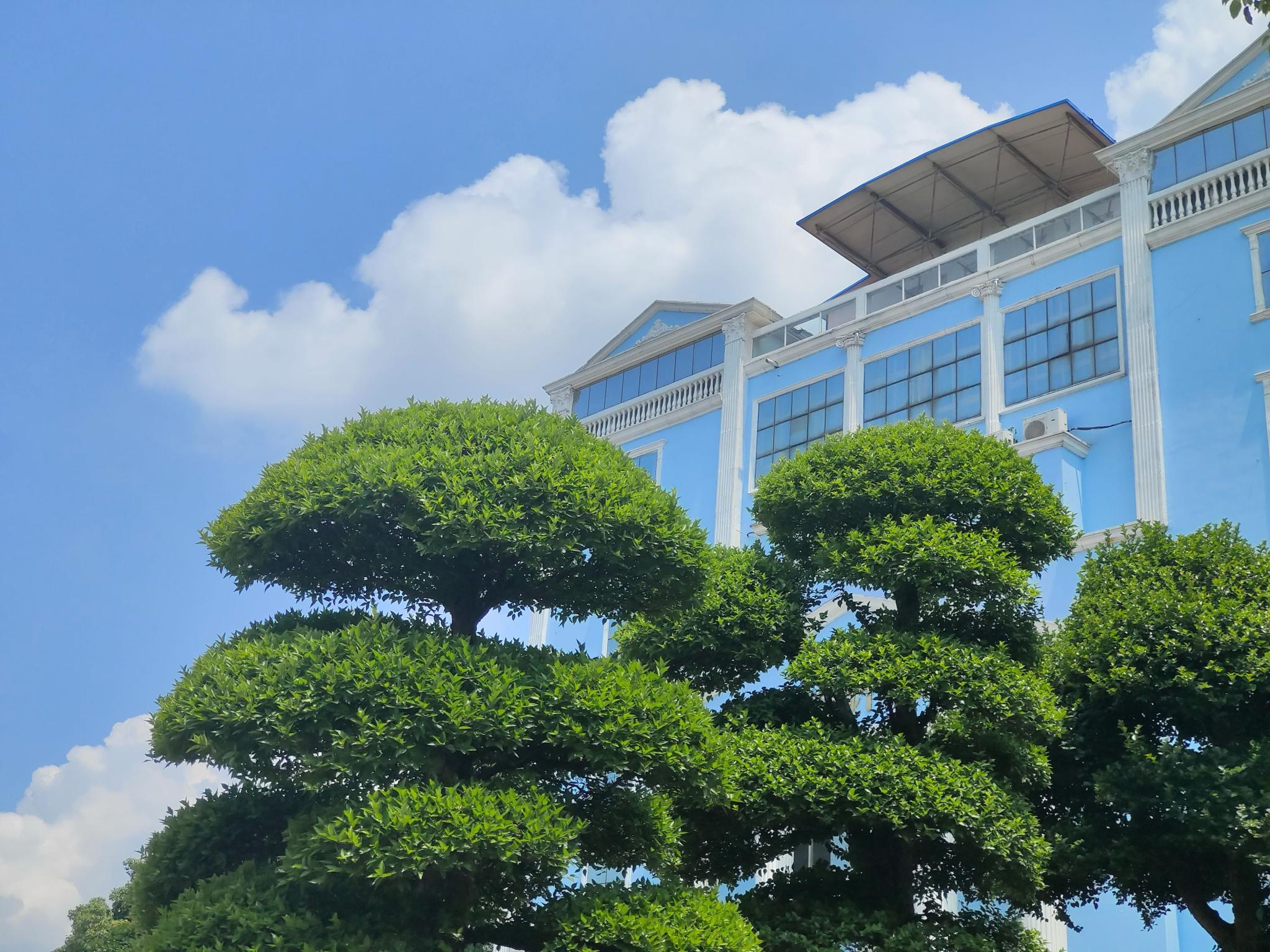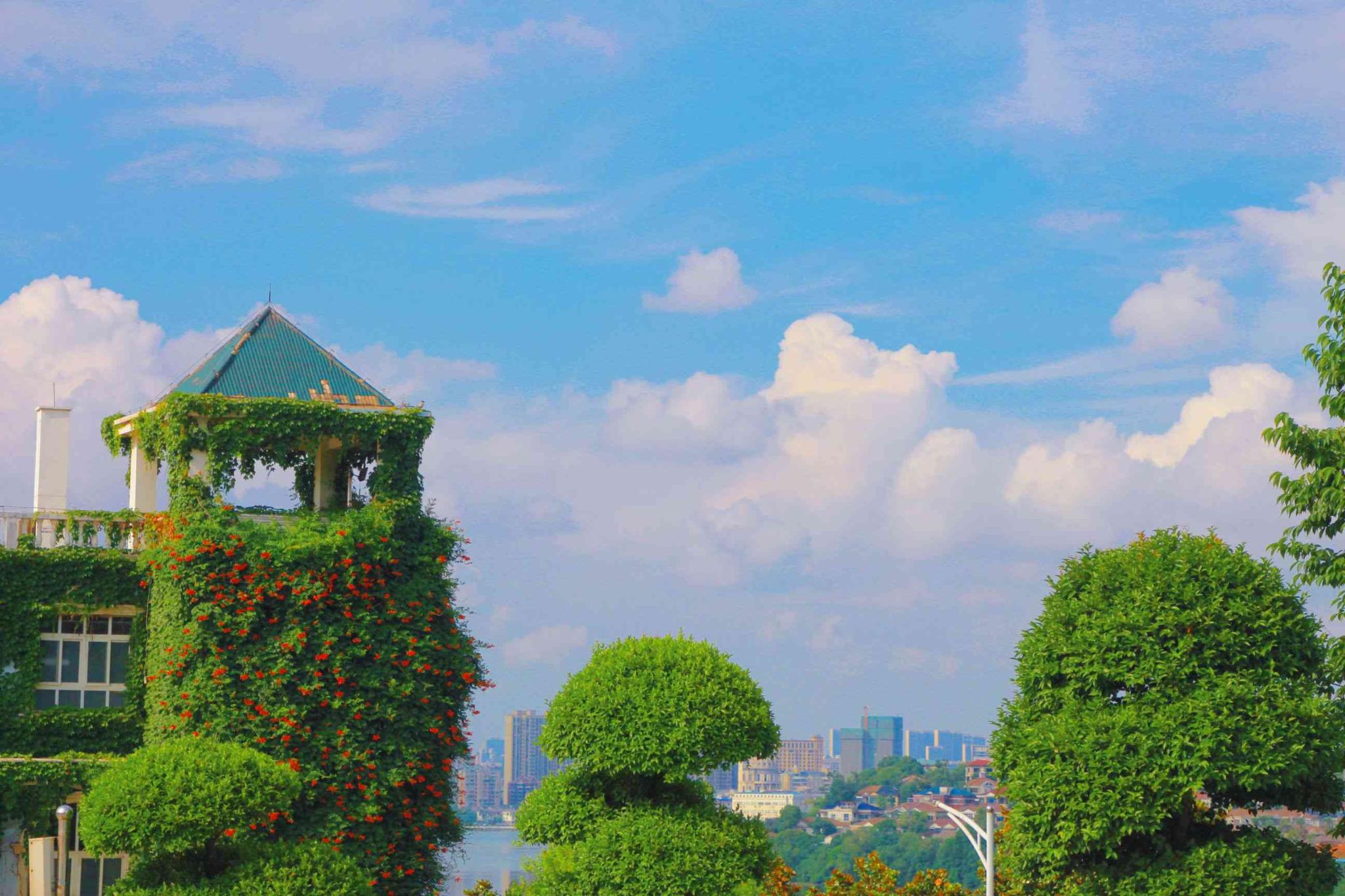 中南在线5月24日消息(摄影摄像中心记者 姚芯怡 代露银 摄影)当初夏的调色盘染遍了整个武昌理工学院,每个学院教室外的枝丫挡不住炙热的骄阳,白云定格在了湛蓝的天空上。5月23日下午,摄影摄像中心记者姚芯怡、代露银走进武昌理工学院,拍摄下云朵的形状。(完)
