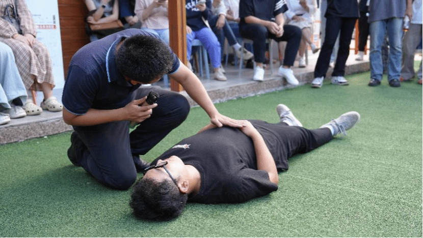 中南在线10月18日消息(摄影摄像中心记者 马灿 李俊汝 陈文瑄 杨晨菲 摄影)10月16日下午,武昌理工学院在东区一站式学生社区安装AED设备,并举行AED设备的教学和急救知识,提升个人急救意识的培训。现场教练对师生们进行了急救的示范,帮助师生们提升了个人急救能力和急救意识。给师生留下了深刻的印象!(完)