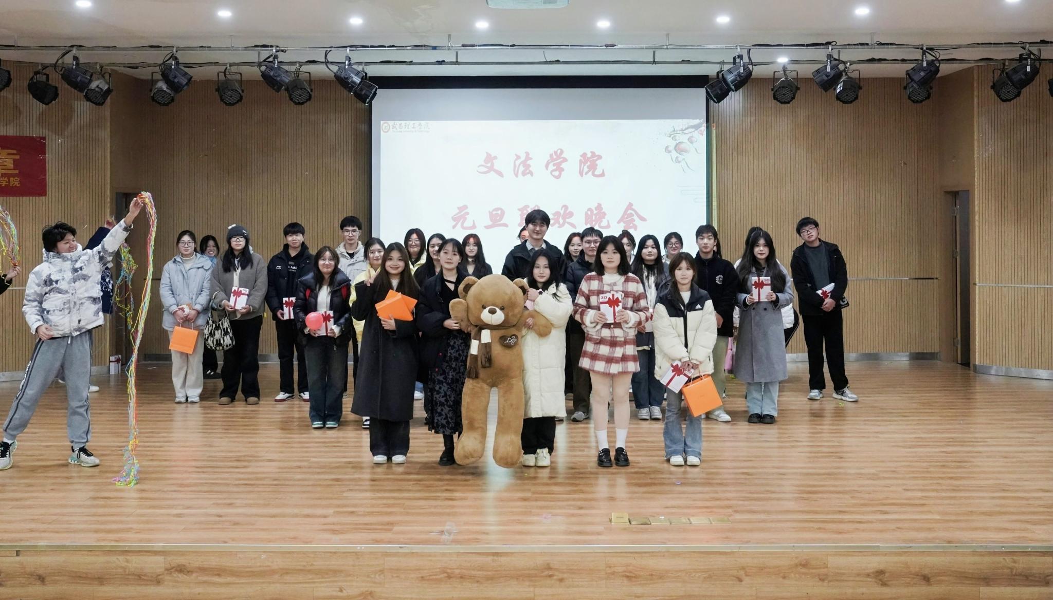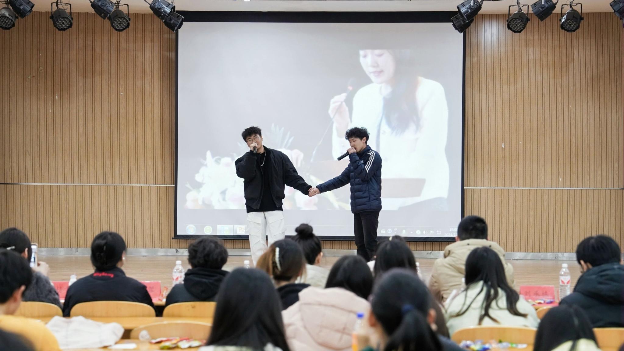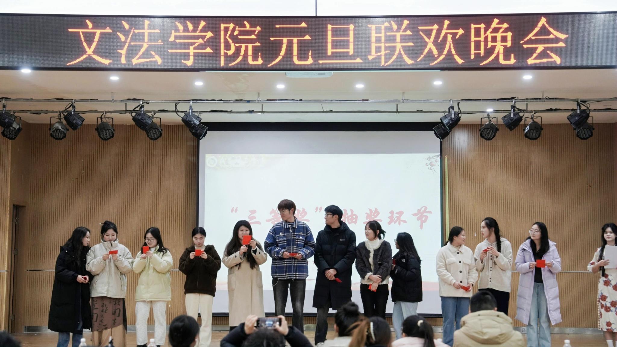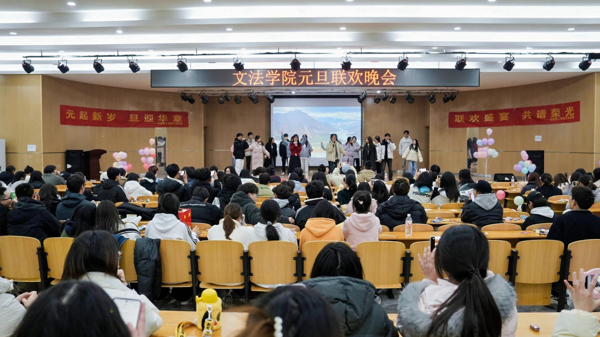 中南在线12月26日消息(摄影摄像中心记者 何硕 杨诚 刘丝雨 李嘉域 摄影) 武昌理工学院文法学院于12月26日在商学院九楼报告厅举办了一场精彩纷呈的元旦晚会。晚会现场布置得温馨而喜庆,充满了节日的氛围。师生们欢聚一堂,共同迎接新年的到来。晚会节目丰富多样,包括歌曲、舞蹈、朗诵等,展现了文法学院学生们的多才多艺。师生们积极参与互动环节,现场气氛热烈。晚会不仅为师生们带来了欢乐,也增强了大家的凝聚力和归属感。此次元旦晚会的成功举办,不仅丰富了校园文化生活,也展现了文法学院师生们的良好精神风貌。新的一年,大家将携手共进,再创辉煌。