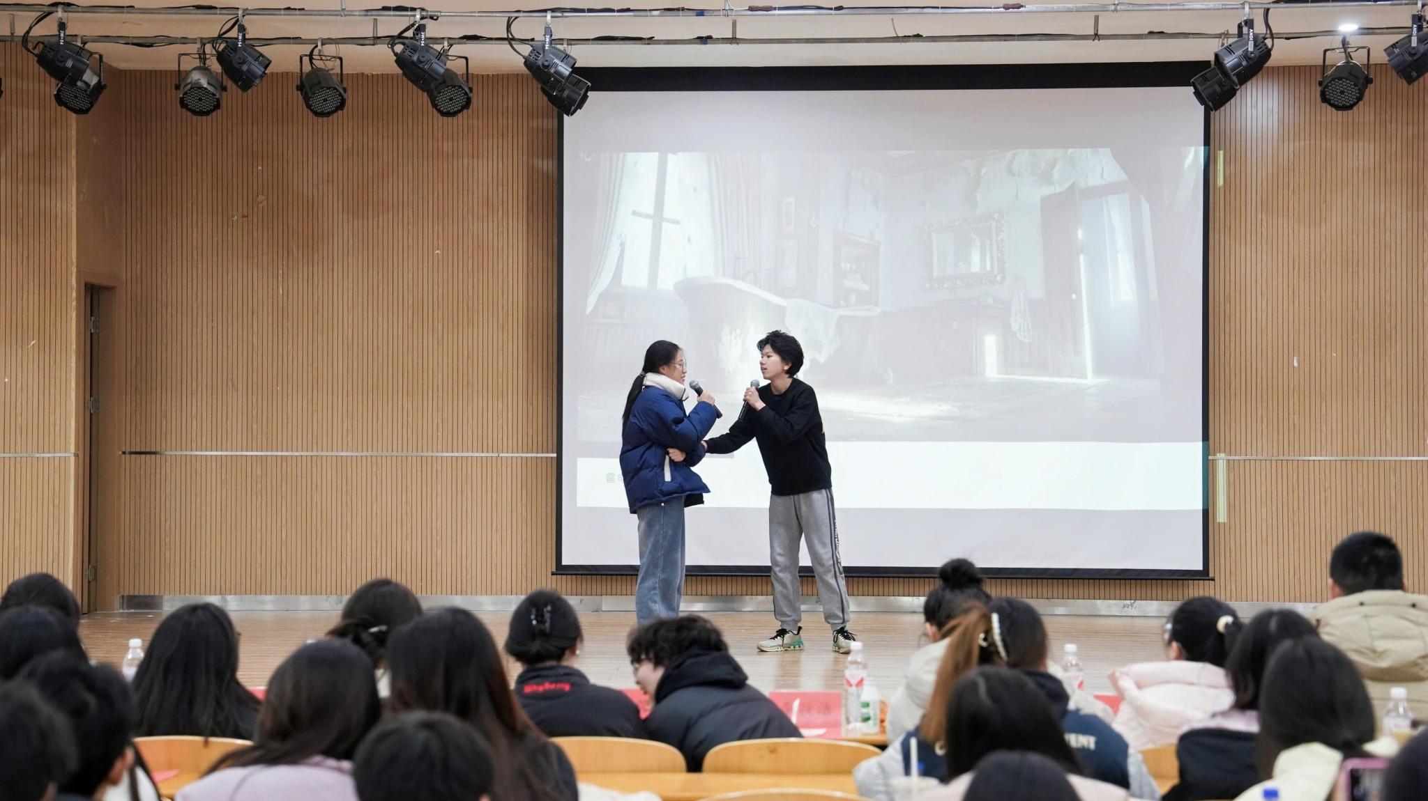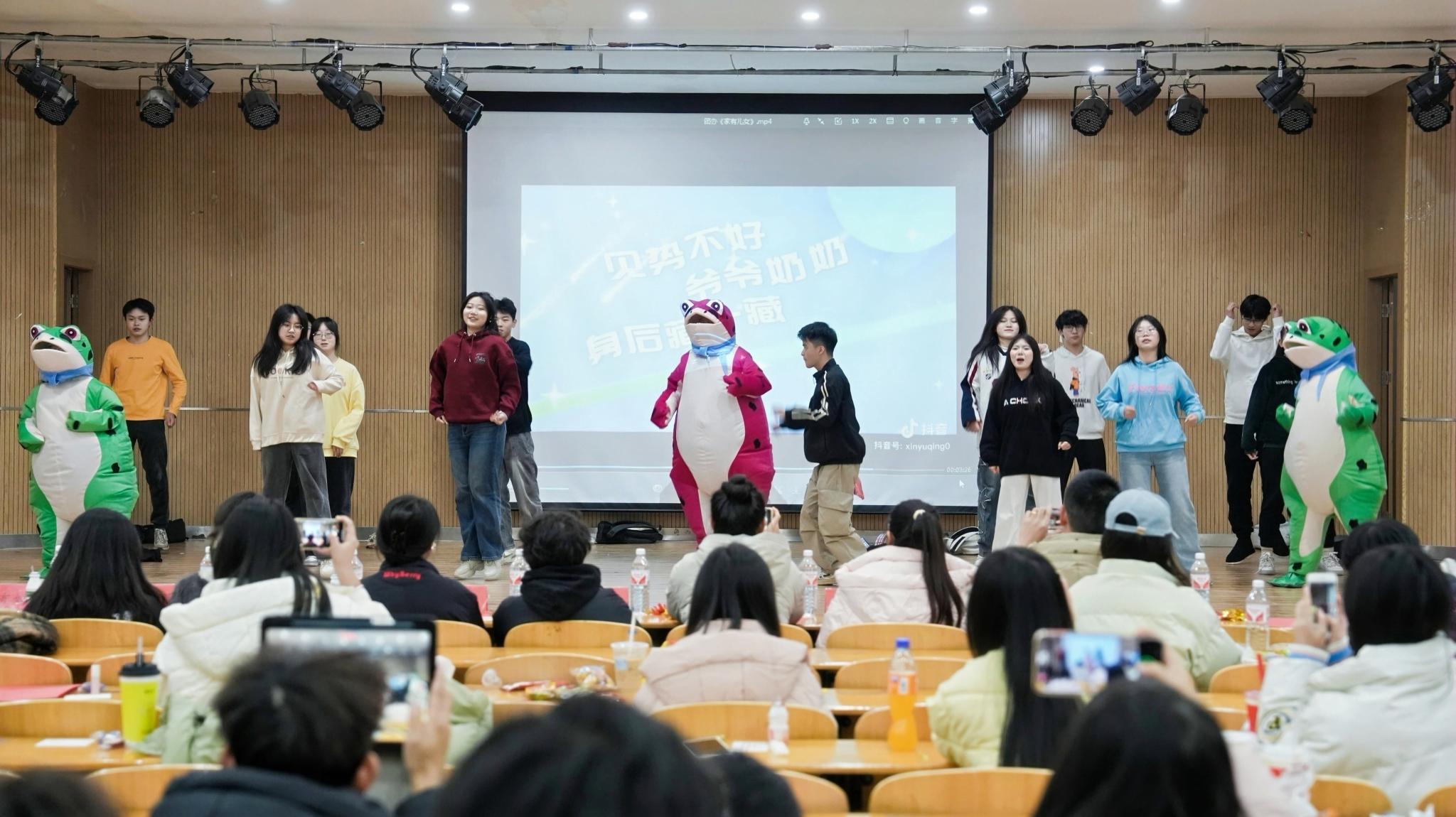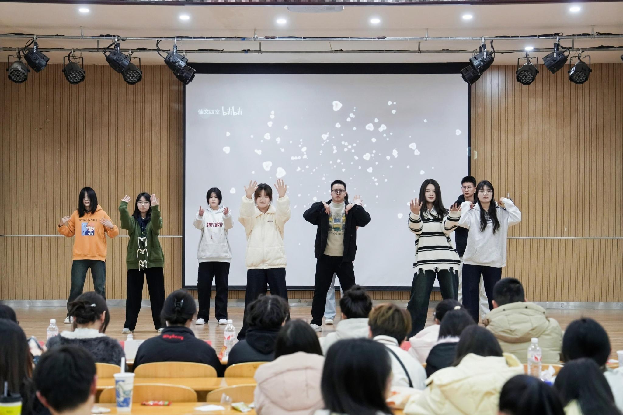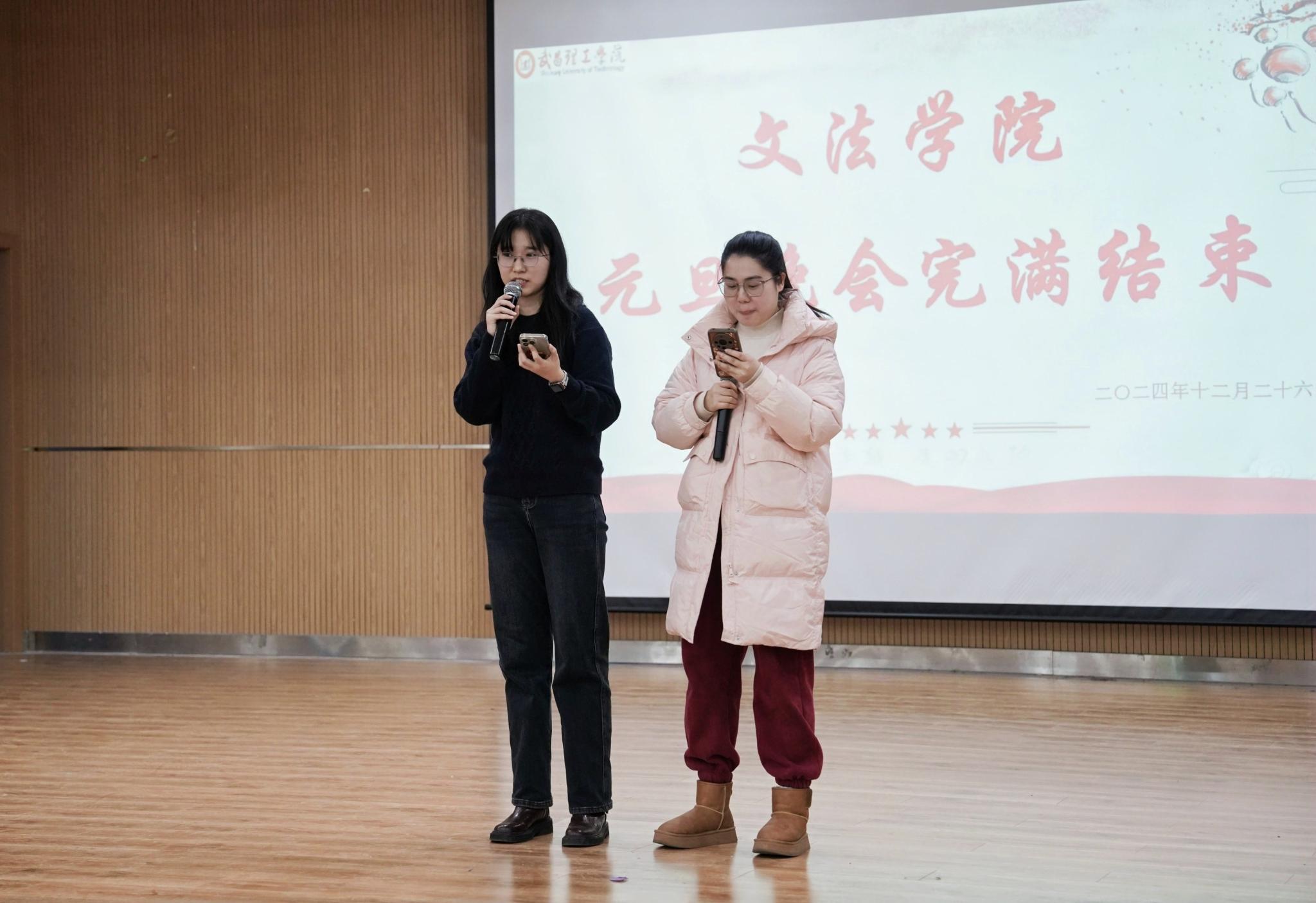 中南在线12月26日消息(摄影摄像中心记者 何硕 杨诚 刘丝雨 李嘉域 摄影) 武昌理工学院文法学院于12月26日在商学院九楼报告厅举办了一场精彩纷呈的元旦晚会。晚会现场布置得温馨而喜庆,充满了节日的氛围。师生们欢聚一堂,共同迎接新年的到来。晚会节目丰富多样,包括歌曲、舞蹈、朗诵等,展现了文法学院学生们的多才多艺。师生们积极参与互动环节,现场气氛热烈。晚会不仅为师生们带来了欢乐,也增强了大家的凝聚力和归属感。此次元旦晚会的成功举办,不仅丰富了校园文化生活,也展现了文法学院师生们的良好精神风貌。新的一年,大家将携手共进,再创辉煌。