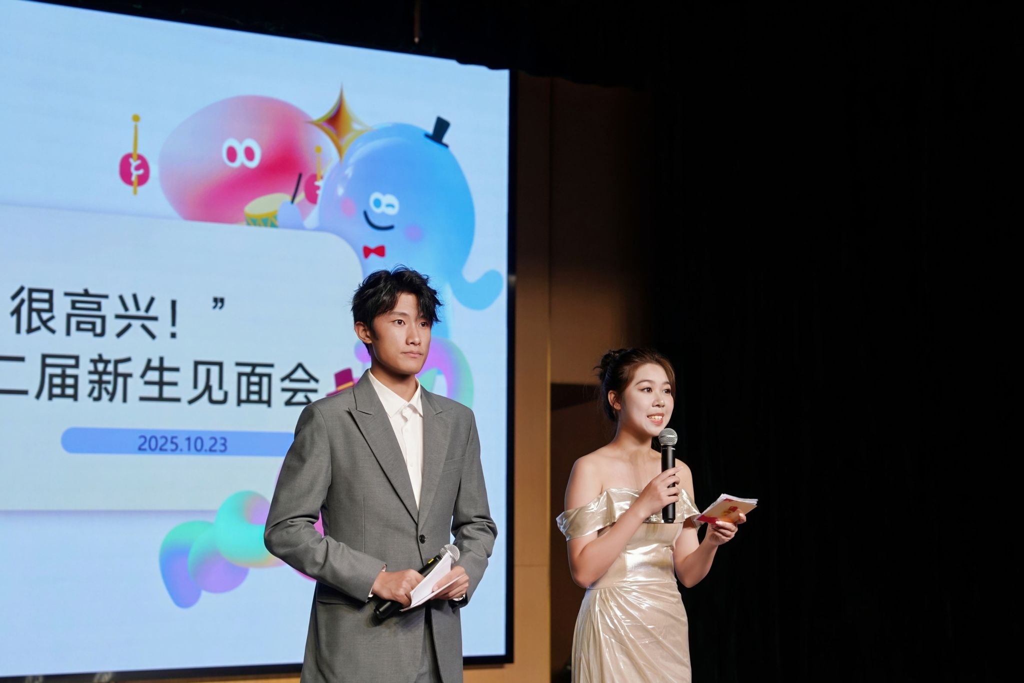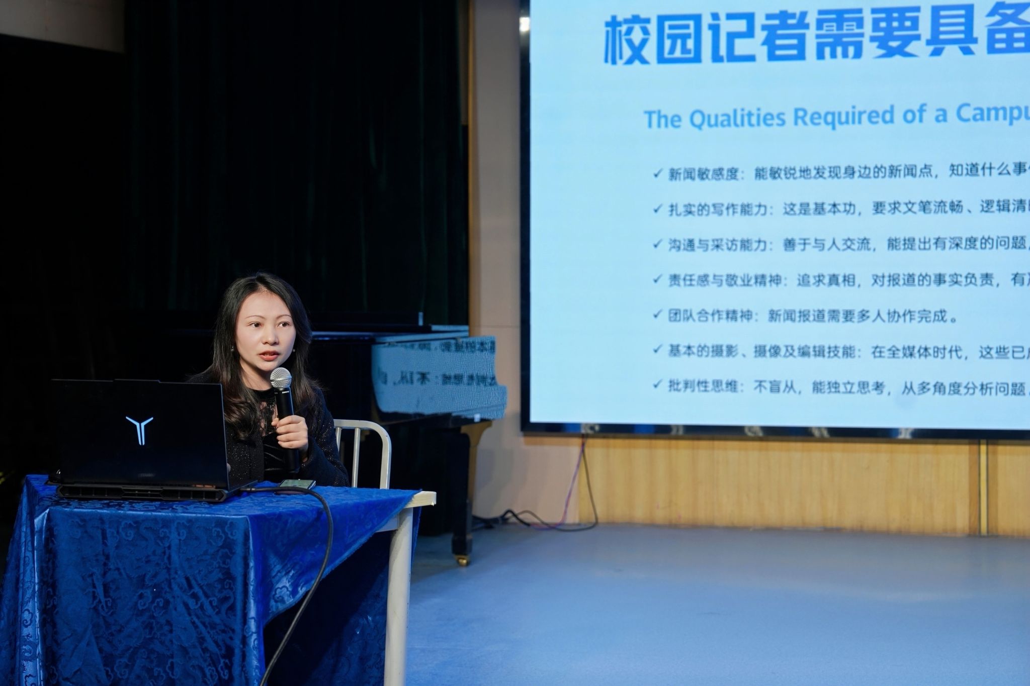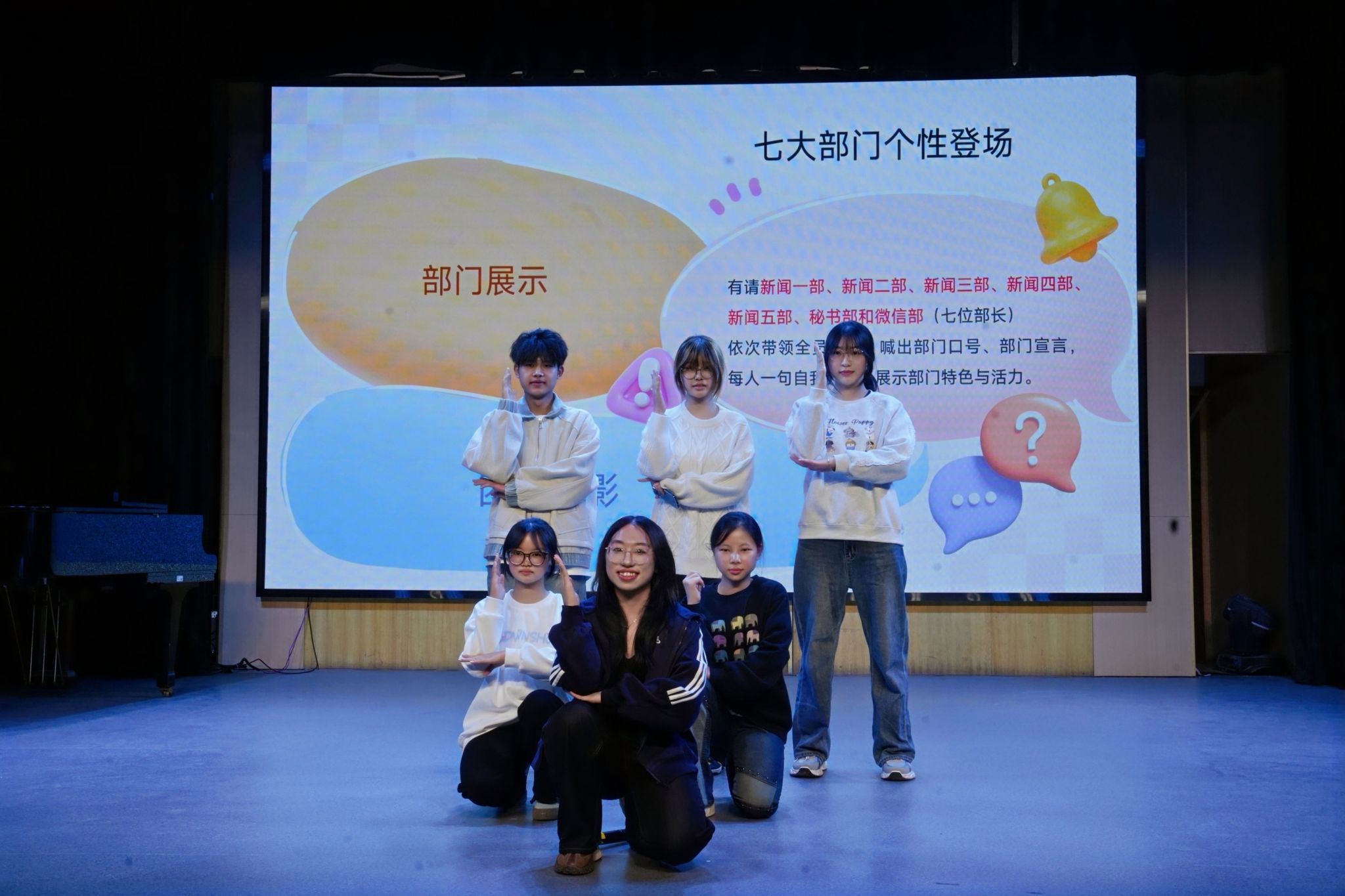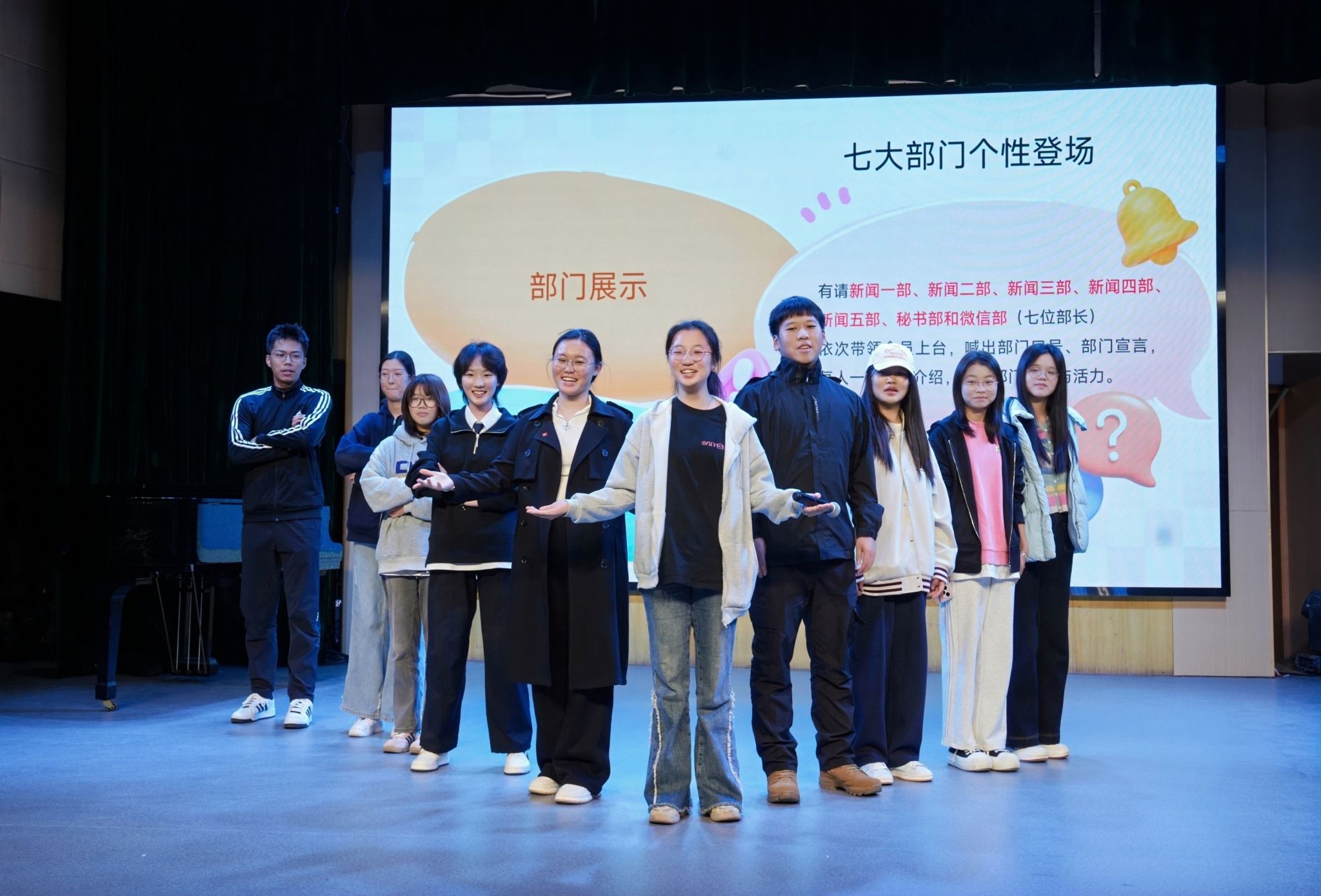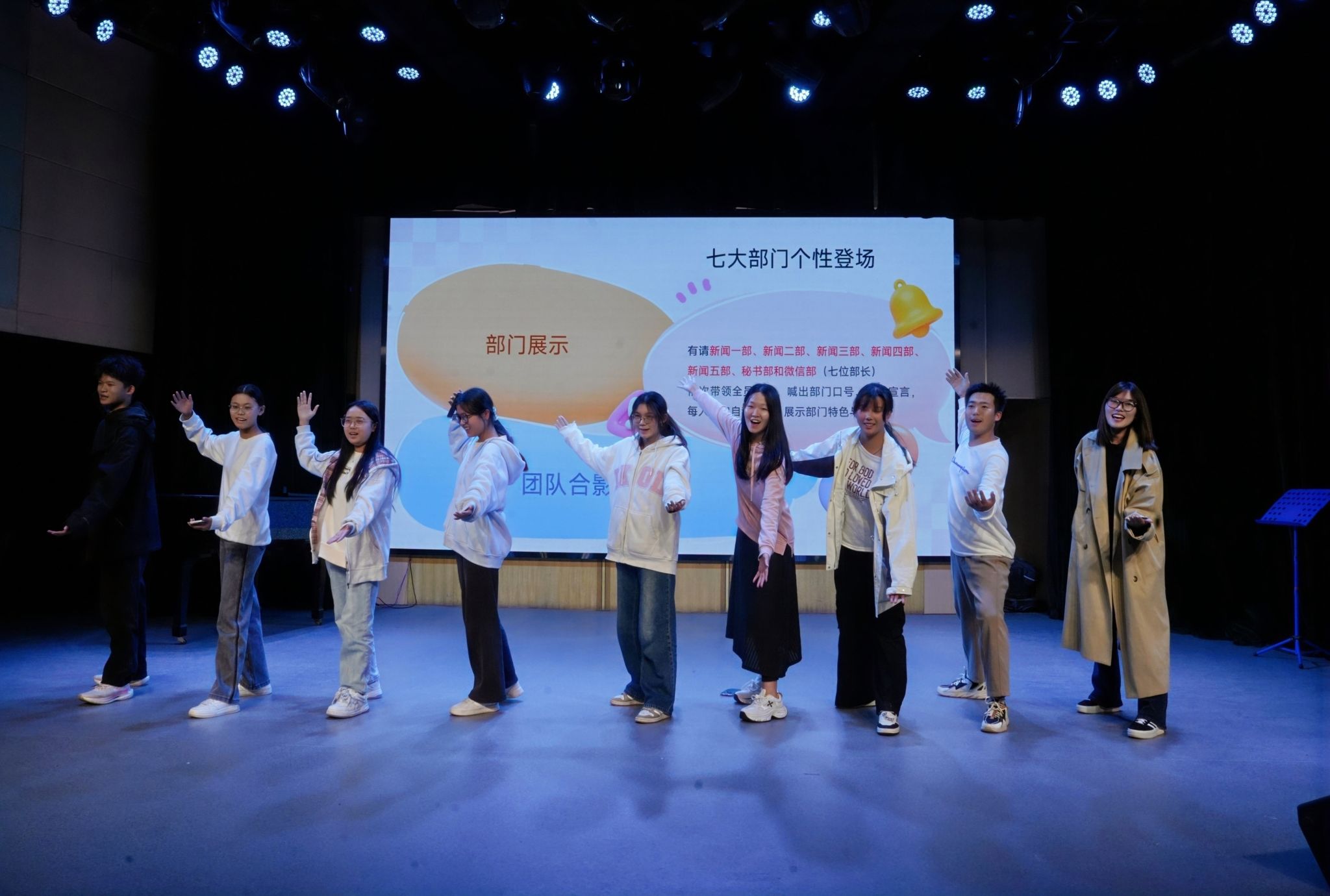 中南在线10月26日消息(大通社记者 何佳婧 摄影摄像中心 周冰芳 明骏飞 摄影)10月23日,武昌理工学院大学生通讯社第二十二届新生见面会在影视传媒学院小剧场举办,大学生通讯社指导老师周黎、大通社全体成员以及新媒体中心微信部应邀出席。见面会上,周黎老师为现场记者带来校园记者和新媒体运营技巧的培训,此外,现场设有舞蹈表演、问答互动、社长团队及各部门亮相展示团队活力的环节,并举行九月“星原奖学金”颁奖仪式。
