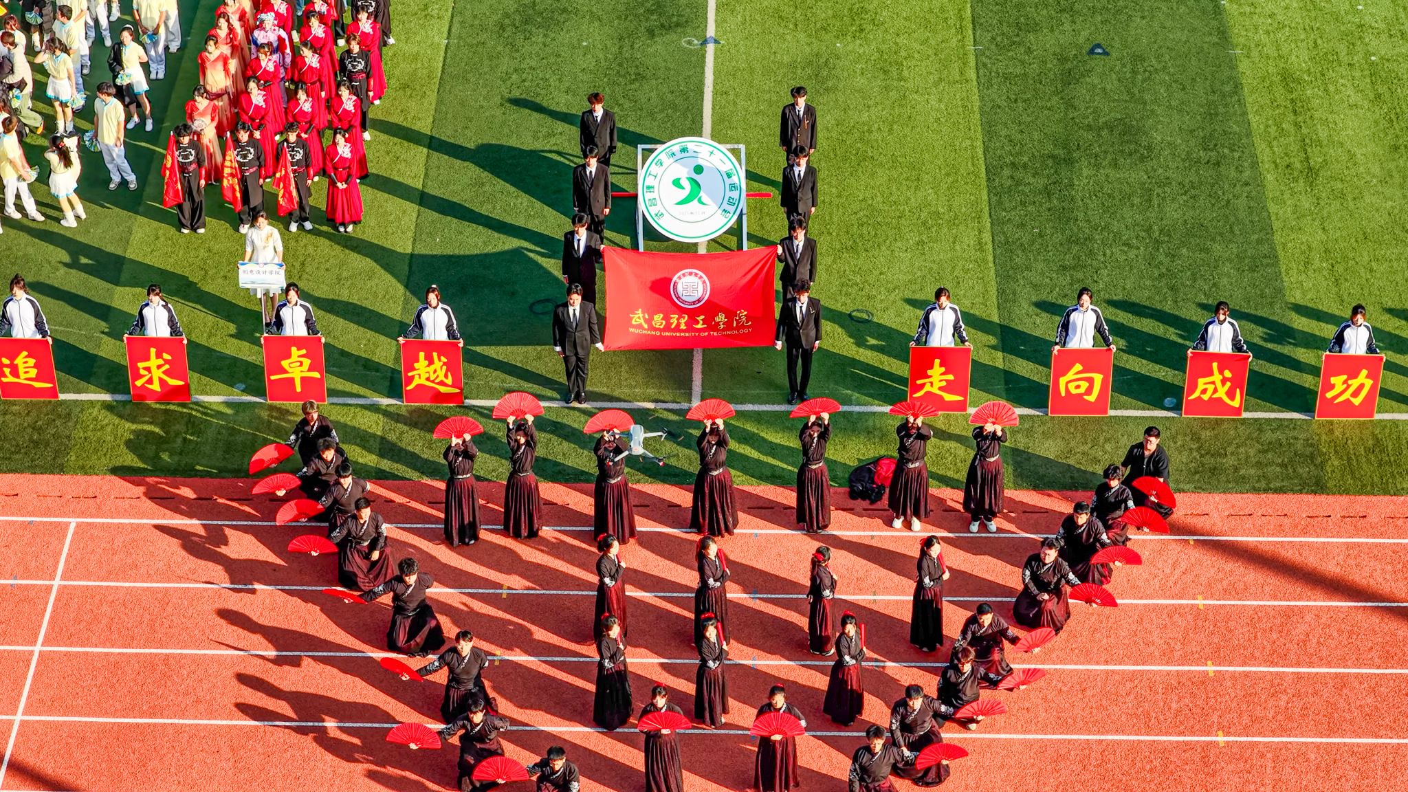 中南在线11月21日消息(通讯员 苏紫微 王颖慧 摄影摄像中心 王周矗 张立志 摄影)航拍俯瞰,绿茵如毯。11月21日,武昌理工第二十一届运动会开幕:国旗队踏阵,千名学子拼出“奋进”图;1200人团体操随航拍镜头律动,红绸翻涌成浪。