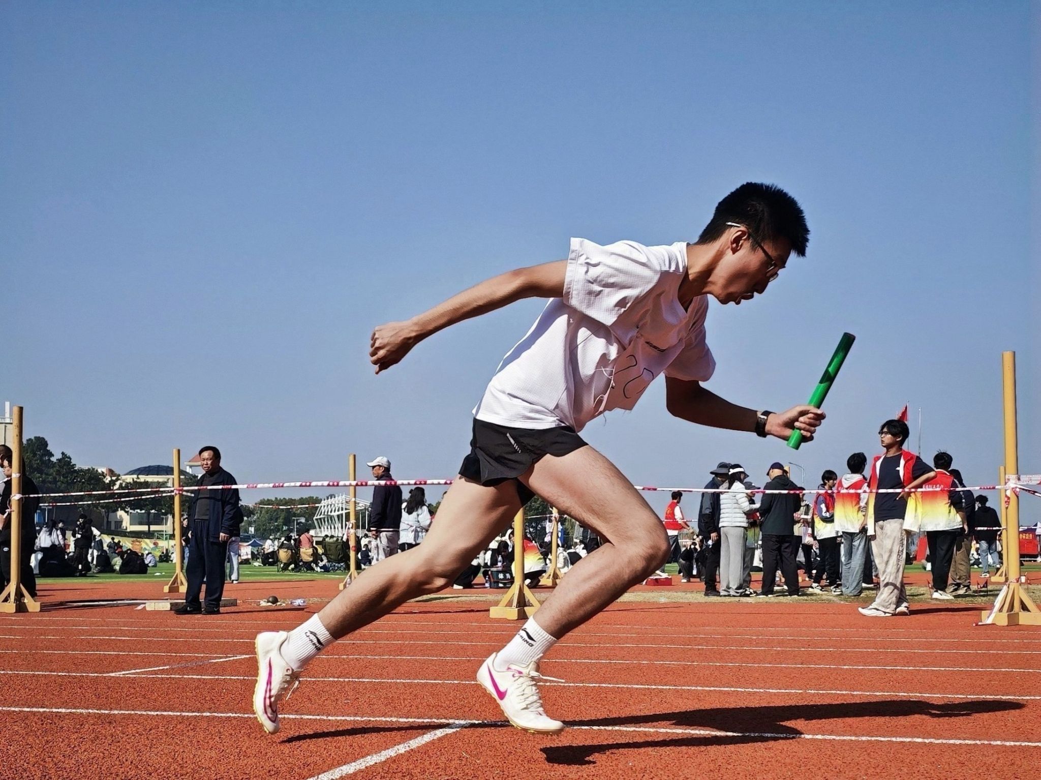 中南在线11月22日消息(摄影摄像中心 范昱庆 李鸿斌 雷梦婷 陈星雨 摄影)11月22日上午,武昌理工学院第二十届运动会学生组4×100米决赛的号角在赛场吹响。红色跑道上,选手们的身影如离弦之箭,每一步都踏响青春的鼓点。这场比赛不仅展现了武昌理工学子的运动风采,更传递了团结协作的力量。