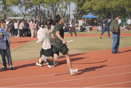 中南在线11月22日消息(摄影摄像中心 周冰芳 明骏飞 耿茂程 叶梦月 张靖妤 摄影)武昌理工学院第二十一届运动会男子4×400米决赛在东区运动场开跑。来自各学院的选手们展开角逐,为全场观众呈现了一场速度与耐力的精彩较量。随着发令枪响,选手们如离弦之箭冲出起跑线,在首圈保持稳健节奏,紧咬彼此差距。进入后半程,竞争愈发白热化,选手们凭借顽强的意志和出色的体能展开冲刺。弯道超越、直线加速,每一个动作都牵动人心。比赛不仅展现了运动员们奋勇拼搏的体育精神,也体现了团队协作与个人毅力的完美结合。观众席上,加油声此起彼伏,充分彰显了校园运动的蓬勃活力。