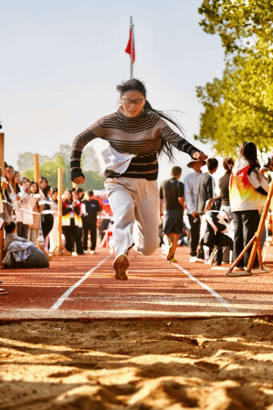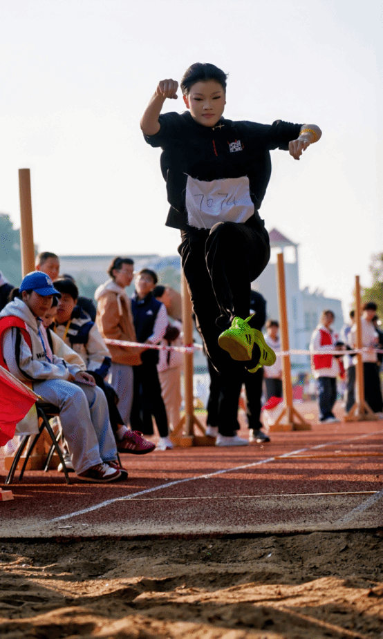中南在线11月22日消息(摄影摄像中心 周冰芳 耿茂程 明骏飞 周雄杰 摄影)武昌理工学院第二十一届运动会女子跳远项目在东区运动场火热开赛,赛场上运动员们奋力拼搏,展现了出色的竞技水平和昂扬的精神风貌。比赛开始后,选手们依次登场,助跑、起跳、腾空、落地,动作一气呵成。沙坑旁,裁判员严谨测量,记录员精准统计,确保比赛公平公正。运动员们不断挑战自我,每一次跳跃都凝聚着平时的刻苦训练,场边加油声此起彼伏,气氛热烈。经过角逐,选手们凭借稳定的发挥和出色的爆发力,不断刷新个人最好成绩,展现了当代大学生积极向上、勇于拼搏的体育精神。此次女子跳远比赛不仅为运动会增添了精彩看点,也进一步推动了校园体育文化的蓬勃发展。