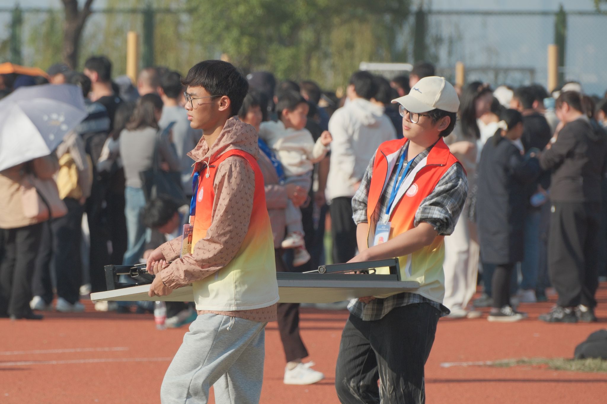 中南在线11月23日消息(摄影摄像中心 官裕 朱君毅 摄影)金秋送爽,丹桂飘香,武昌理工学院第二十一届运动会在学校运动场隆重举行。赛场上,运动健儿们奋勇拼搏、挥洒汗水;赛场外,一群身着红色马甲的志愿者们忙碌穿梭,他们以饱满的热情、细致的服务,为运动会的顺利开展保驾护航,成为赛场上一道温暖而亮丽的风景线。