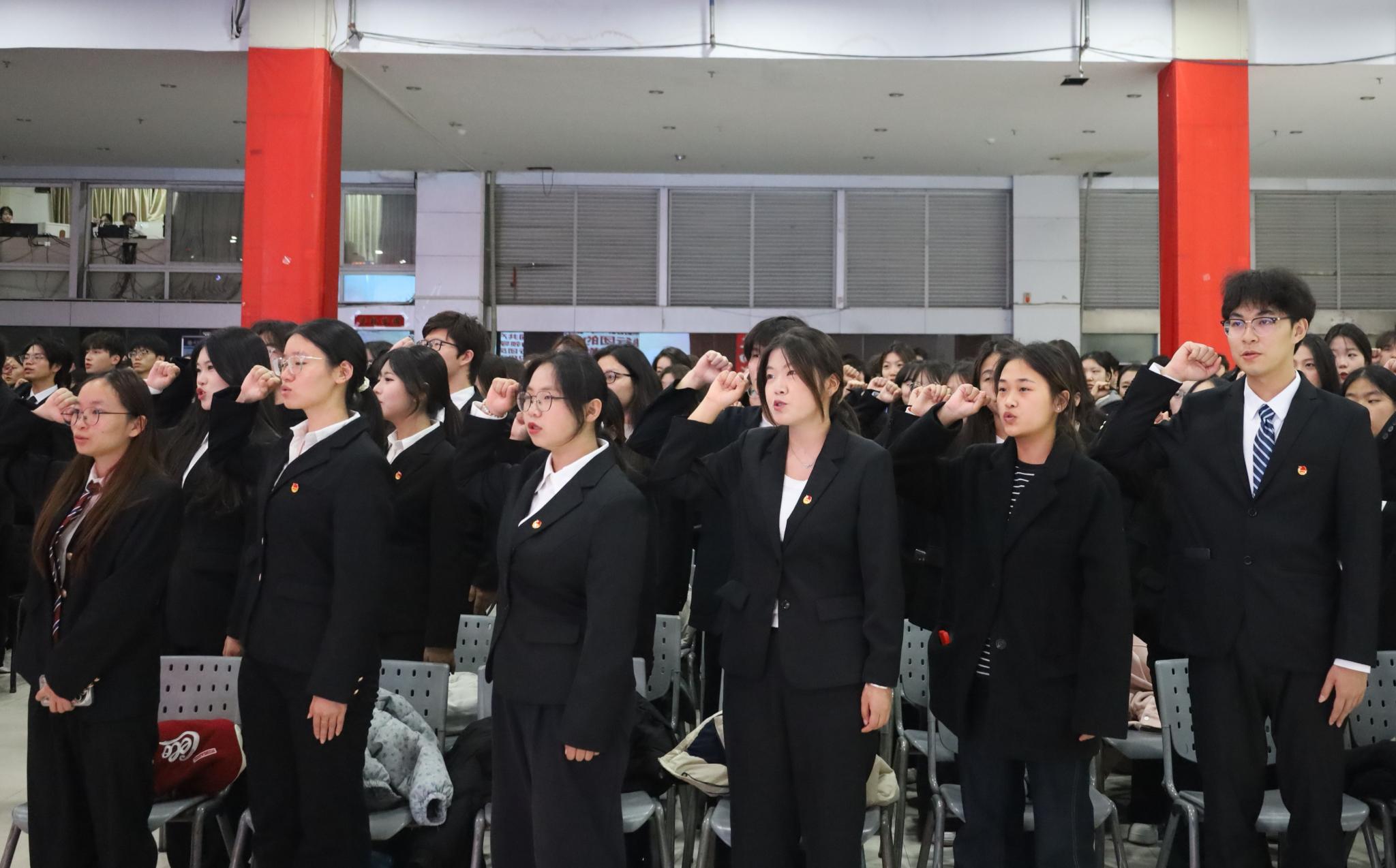 中南在线11月27日消息(摄影摄像中心 彭婉怡 武兆颂 高泽铭 摄影)11月27日,2025年新发展团员入团仪式在大学生活动中心隆重举行,百余名新团员在团旗见证下开启青春新征程。团委老师为新团员代表佩戴团徽、颁发团员证,闪闪团徽承载着时代期许。面向鲜红团旗,新团员高举右拳庄严宣誓,铿锵誓言彰显坚定信念。新团员代表发言,将以团员标准严格要求自己,把个人成长融入国家发展。党组织负责人寄语青年,要坚定理想、勤学本领,在奋斗中绽放青春光彩。