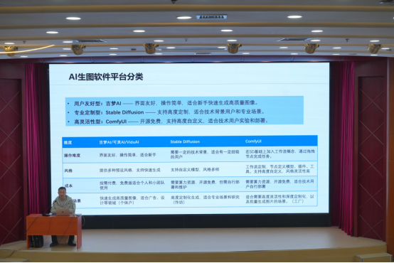 中南在线12月9日消息(摄影摄像中心记者 刘宇涵 徐芸 江浅浅 摄影)12月9日,武昌理工学院在图书馆二楼报告厅开展《AI创作工具教学:绘画与视频制作软件实操课》。本课程专注于AI绘画与视频制作的核心工具实操。课程将系统讲解如即梦AI·Stable Diffusion等主流AI绘画软件,以及剪映等视频剪辑工具的使用方法。教学内容涵盖从文本描述(提示词)撰写技巧、图像参数精细调整,到生成图像的后期优化与扩展。课程适合对AI创作感兴趣的创作者、设计师、内容生产者及所有视觉艺术爱好者。