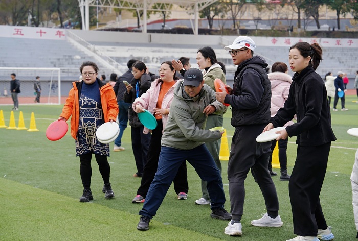 中南在线12月22日消息(摄影摄像中心记者 刘宇涵 郭天天 钟嘉仪 摄影)12月22日,武昌理工学院运动场上欢声笑语不断,一场别开生面的教职工飞盘嘉年华活动热烈举行。本次活动以“融聚力量,盘出精彩”为主题,各院系组队参与。本次活动不仅丰富了教职工的文体生活,更促进了跨部门交流,增强了团队凝聚力,展现了学校教职工健康向上、团结奋进的精神风貌,为校园文化建设注入了新的活力。