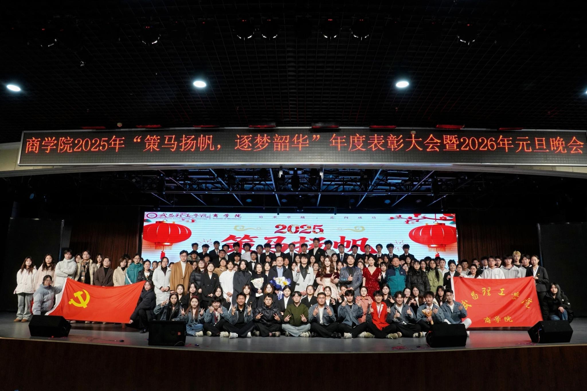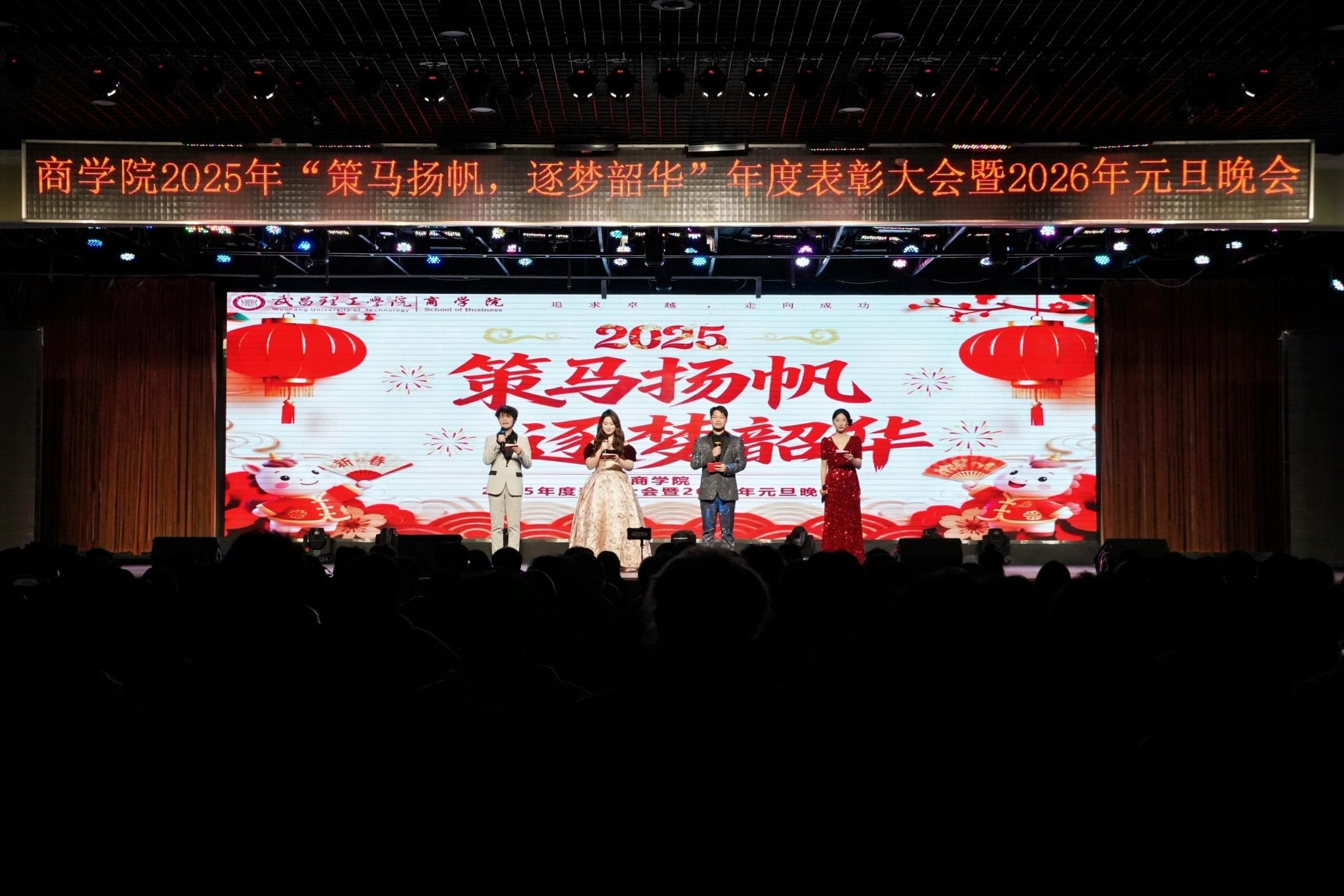 中南在线12月25日消息(摄影摄像中心记者 姚枫琳 郭天天 黄琳 摄影)2026年元旦将至,武昌理工学院商学院于12月25日在商院九楼举办“策马扬帆,逐梦昭华”迎元旦晚会。晚会节目形式丰富多样:开场舞《Helicopter》点燃全场,歌朗诵《千里辞歌行》意境悠远,小品《手机重症监护室》诙谐幽默,相声《财神驾到》添年味,歌曲《老男孩》引发共鸣,群舞《像你这样的朋友》《奔跑的青春》尽显青春活力。整场晚会洋溢着辞旧迎新的喜悦,展现了商院学子的青春风采。