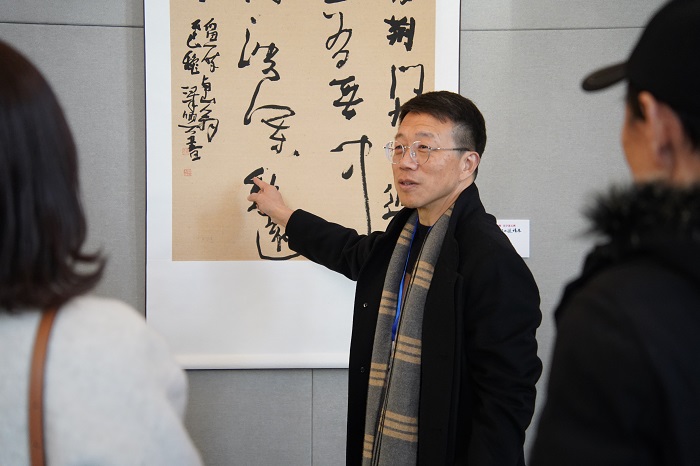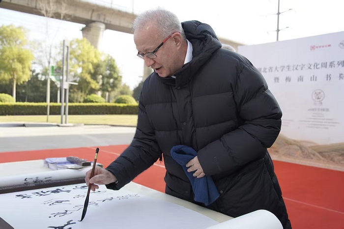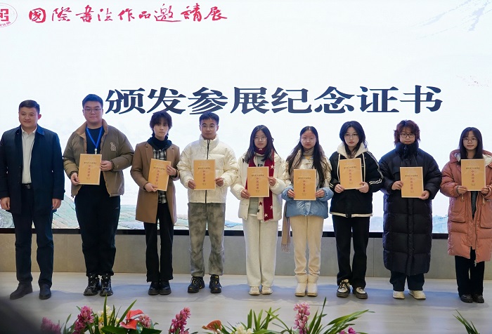 中南在线12月26日消息(摄影摄像中心记者 周冰芳 王颖慧 苏紫微 摄影)12月26日下午,湖北省大学生汉字文化周系列活动之国际书法作品邀请展暨梅南山书院开院仪式在广信万汇城梅南山书院举行。活动上,领导致辞为书院开院送上寄语,揭牌仪式与展览开幕环节相继开展,现场嘉宾进行了自由观展与交流。 此次活动以“笔墨传四海·汉字连五洲”为主题,汇聚国际书法佳作,既展现了汉字书法的艺术魅力与文化底蕴,也为中外书法爱好者搭建了交流平台。梅南山书院的正式开院,更是为传承汉字文化、弘扬书法艺术提供了新的载体,助力湖北省大学生汉字文化周活动成为连接中外文化、推动汉字传播的重要桥梁。