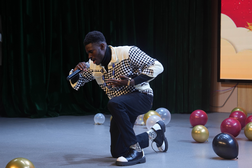 中南在线12月30日消息(摄影摄像中心记者 武兆颂 李泽凯 叶梦月 周冰芳 摄影)武昌理工学院国际教育学院在影传小剧场举行跨年联欢活动,中外师生齐聚一堂,共同迎接新年的到来。活动在开场舞中拉开帷幕,随后歌曲、舞蹈、教师合唱等节目轮番上演,既有中国传统文化的展示,也有异国风情的演绎,充分展现了多元文化交流的魅力。大家辞旧迎新,展望新的一年。此次跨年活动不仅为国际教育学院师生提供了一个展示才艺的舞台,也进一步丰富了校园文化生活,彰显了学校国际化办学的特色与活力。
