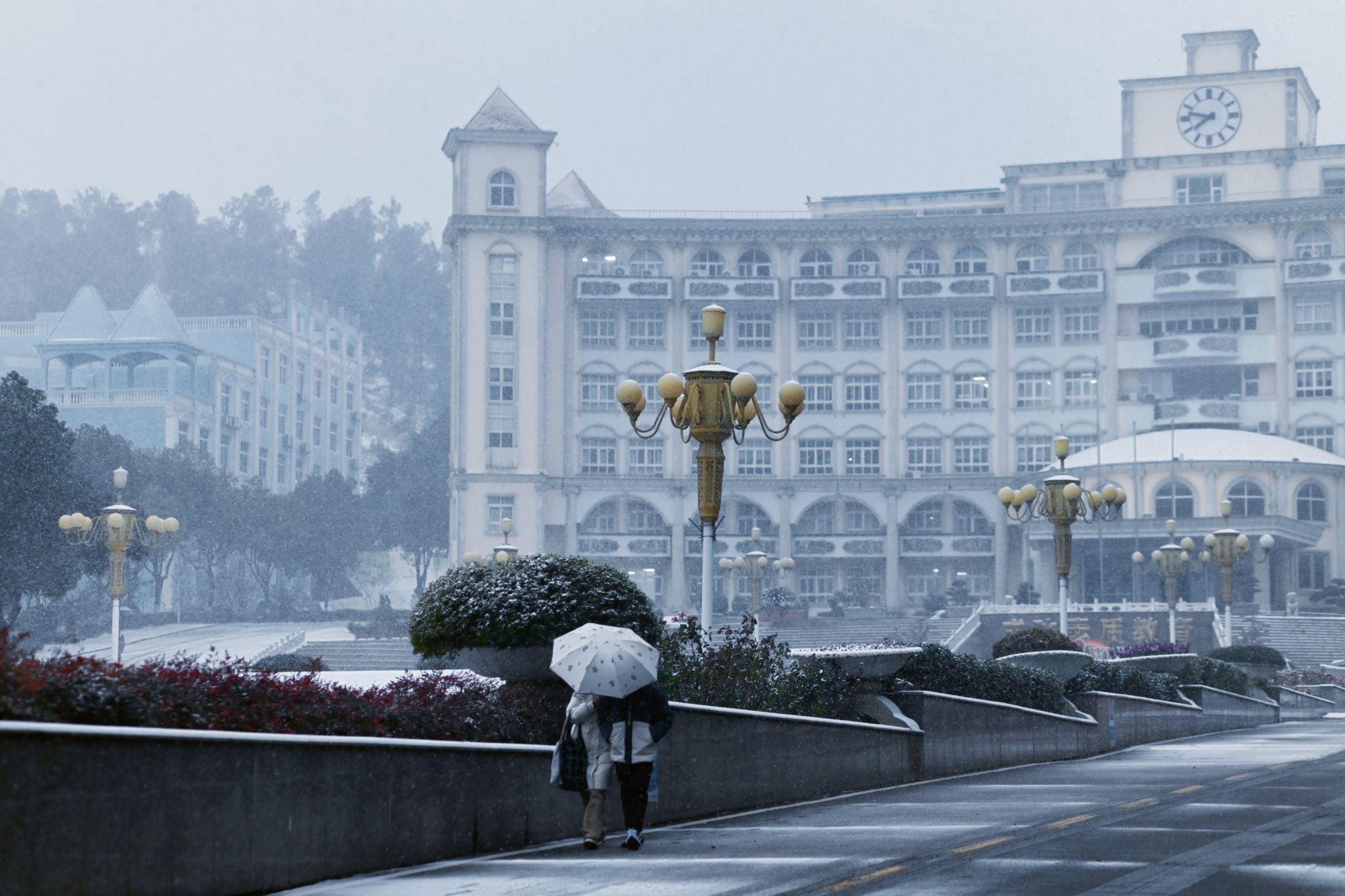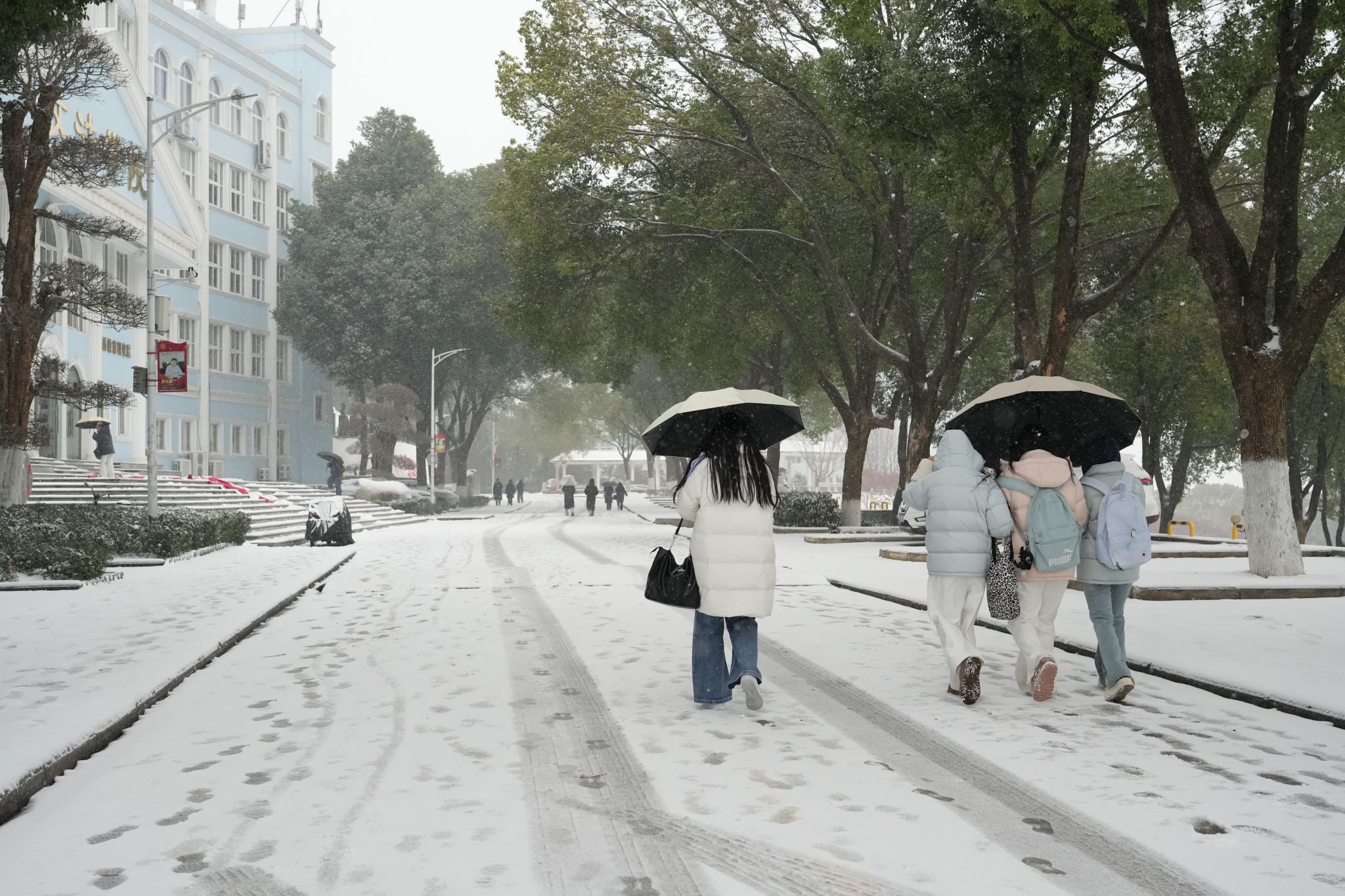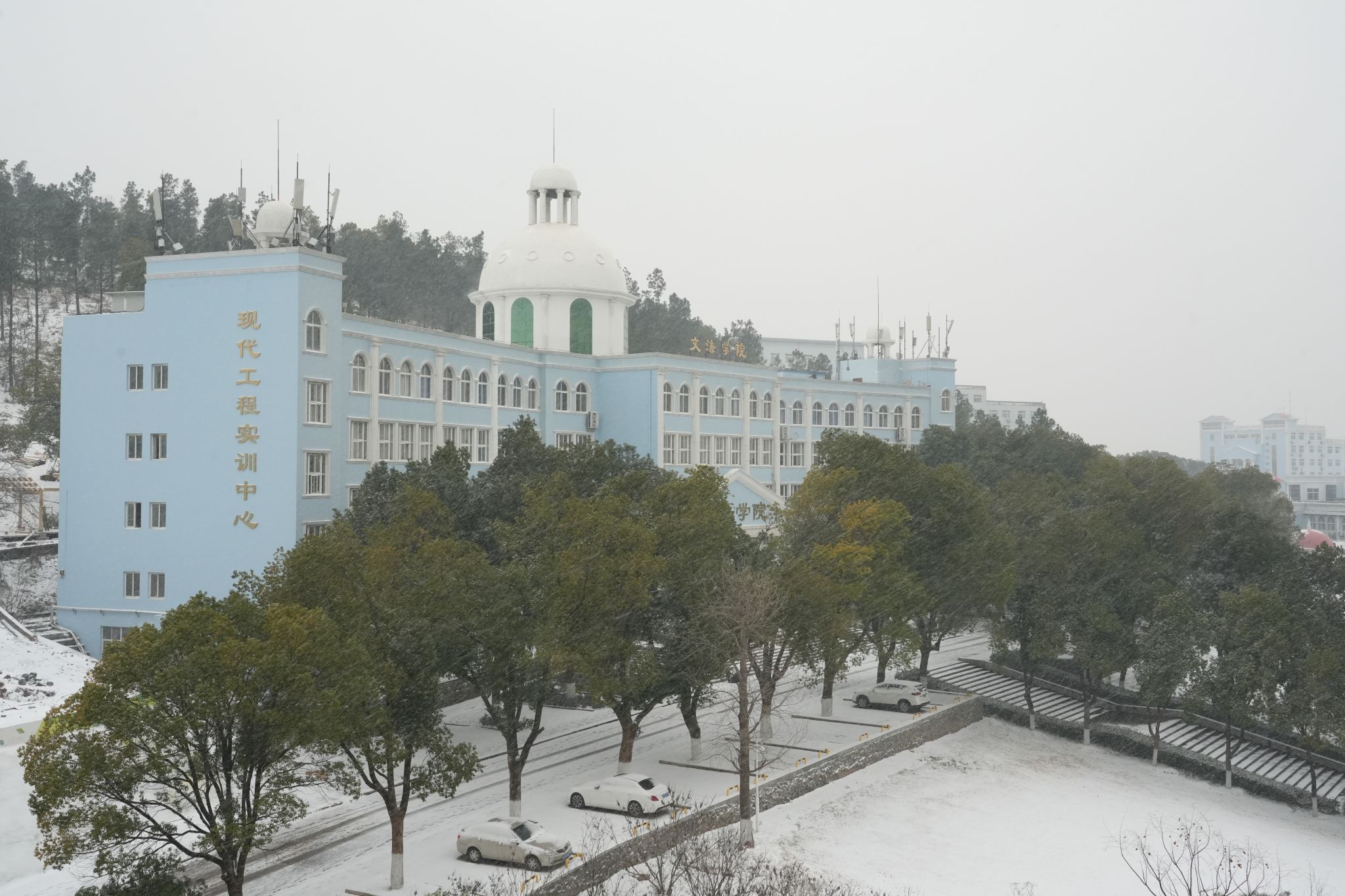 中南在线1月20日消息(摄影摄像中心记者 王颖慧 耿茂程 刘宇涵 摄影)一夜风雪过后,武昌理工学院被白雪覆盖。教学楼琉璃顶积满厚雪,松枝凝霜弯了腰,操场跑道也铺上一层素白。三两学生裹紧围巾走过,脚印浅浅印在雪地上,阵阵笑语随风传来。雪色中的校园静谧整洁,处处可见冬日景致里的生机与日常。