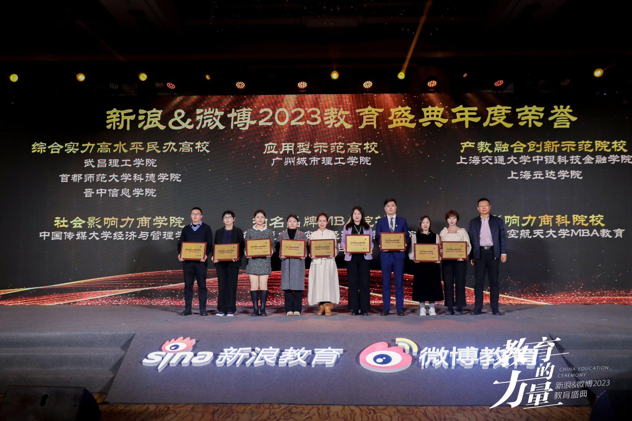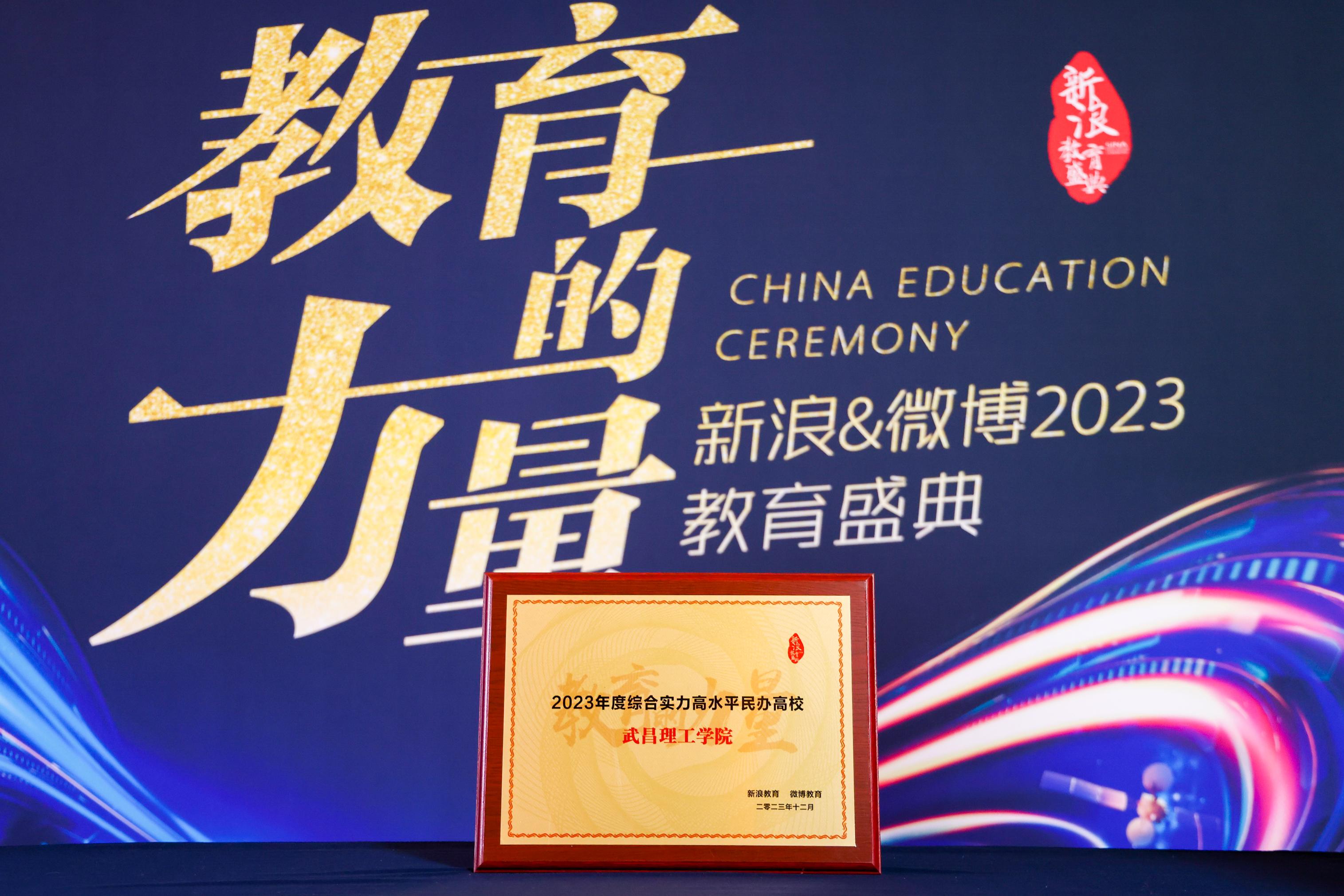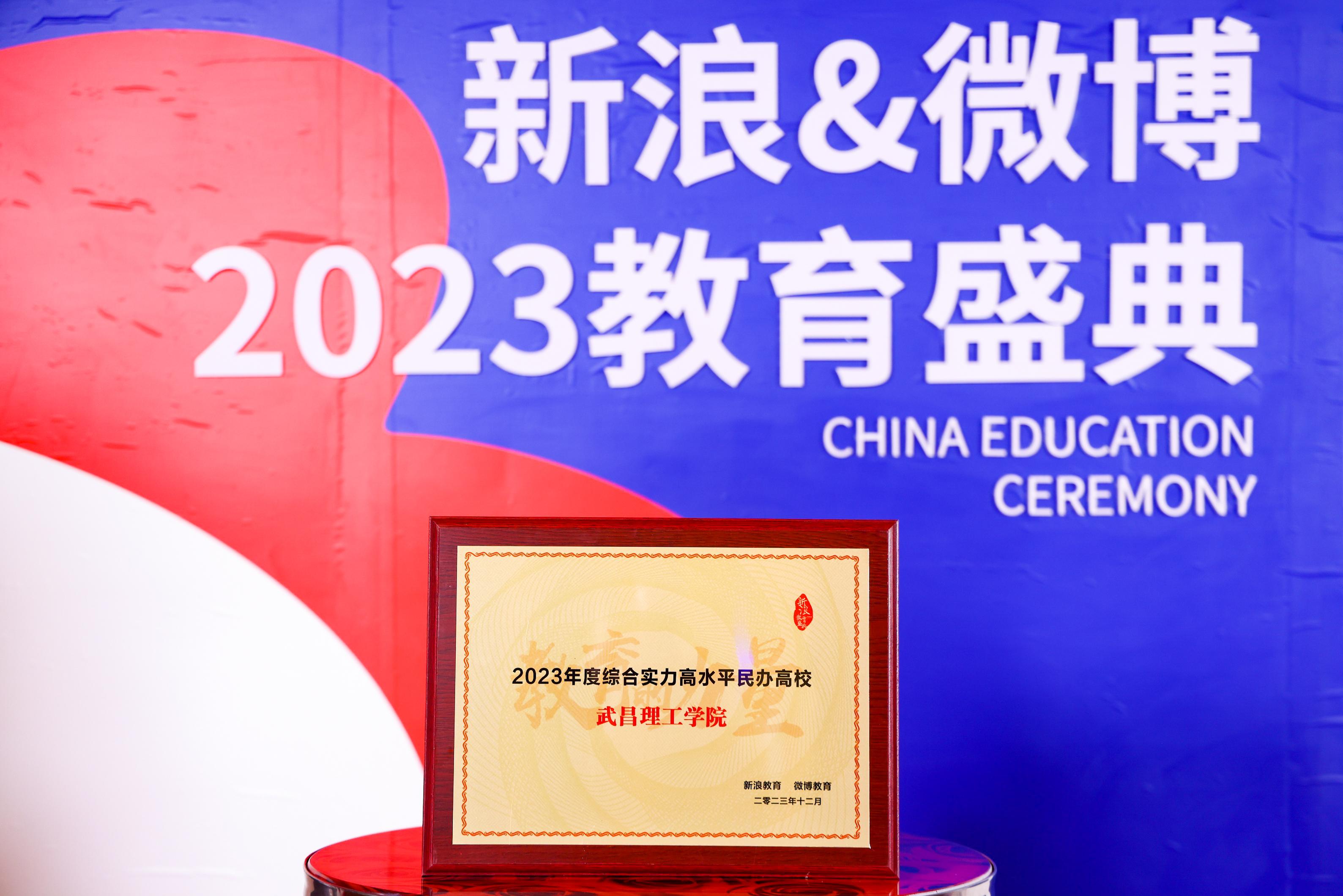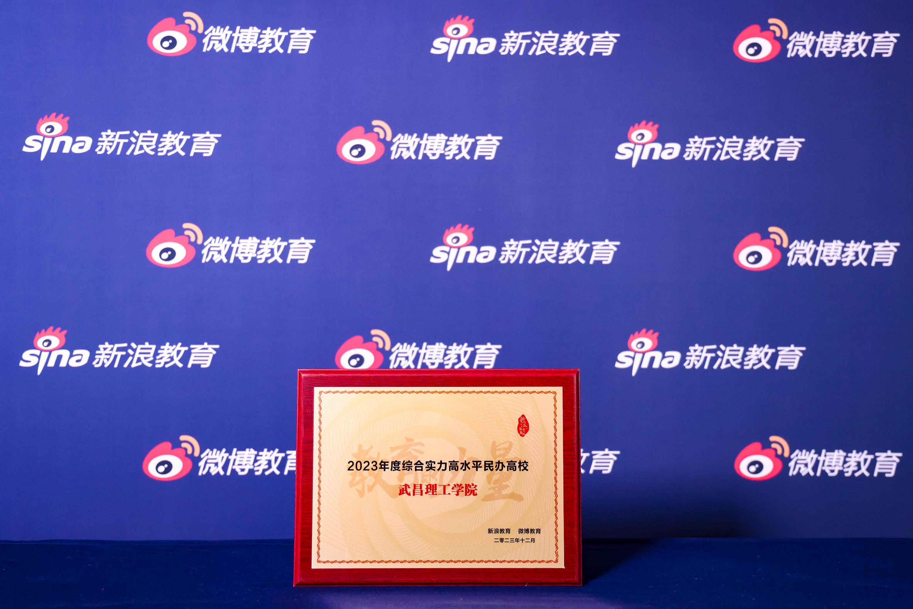 12月14日,由新浪教育、微博教育主办的新浪&微博2023教育盛典在北京盛大启幕。会上,武昌理工学院被授予“2023年度综合实力高水平民办高校”称号并位居榜首。