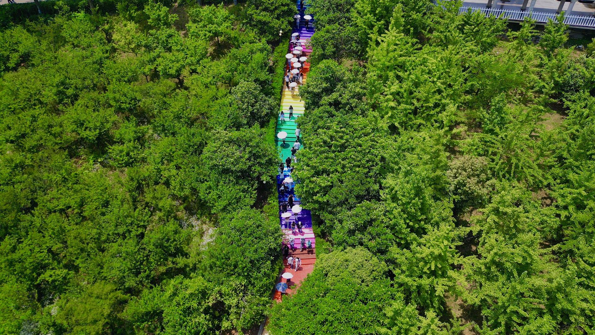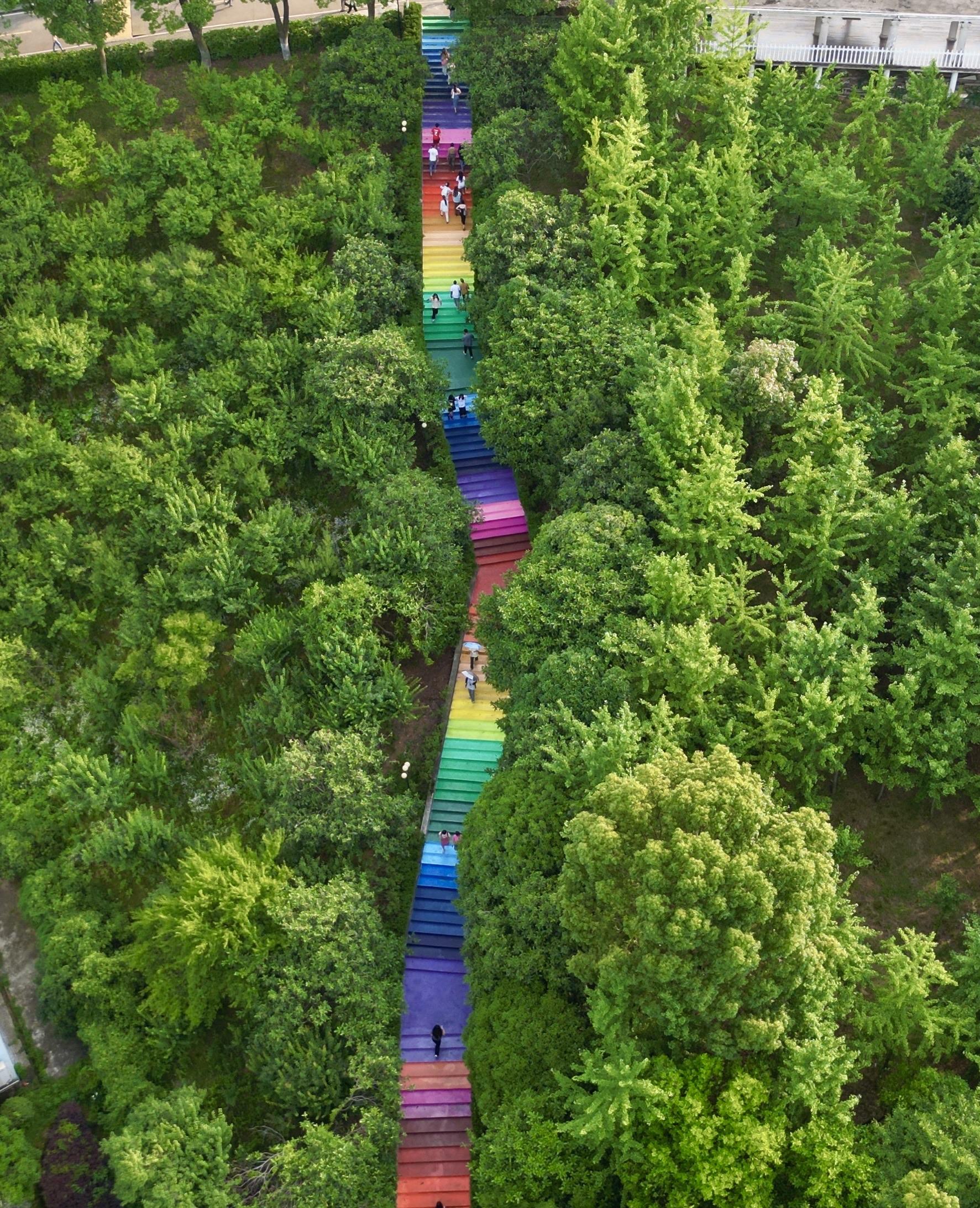 近日,武昌理工学院“步步高升﹒成功阶梯”翻新改造,该校艺术设计学院师生用他们的独特创意和专业技能,以赤橙红绿青蓝紫7种主色调,配出16种渐变色,通过粉刷让其拥有了五彩斑斓的新装,远远望去如同彩虹一般,被誉为“彩虹阶梯”,成为校园一道靓丽风景线和网红打卡点。