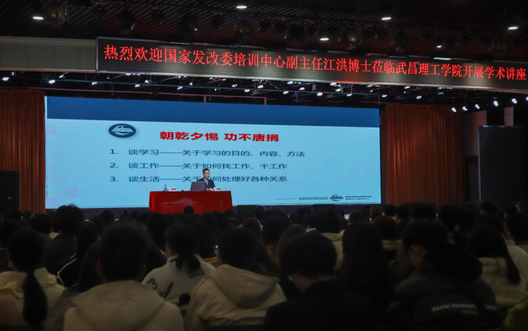 为提高人才培养质量,激发学校广大教职工干事成事的热情,增强同学们学习动能,2月10日,武昌理工学院邀请国家发改委培训中心(宣传中心)副主任江洪博士来校考察交流并进行了专题讲座。